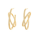 Arracadas que juegan con la geometría: líneas delicadas que se cruzan formando una X radiante de zirconias blancas. Cada detalle brilla con elegancia minimalista, perfecto para quien busca un toque sofisticado sin renunciar a la diversión. Chapa de oro de 14k que promete durabilidad y ese brillo cálido que realza cualquier look. Versátiles, atrevidas y absolutamente adictivas.