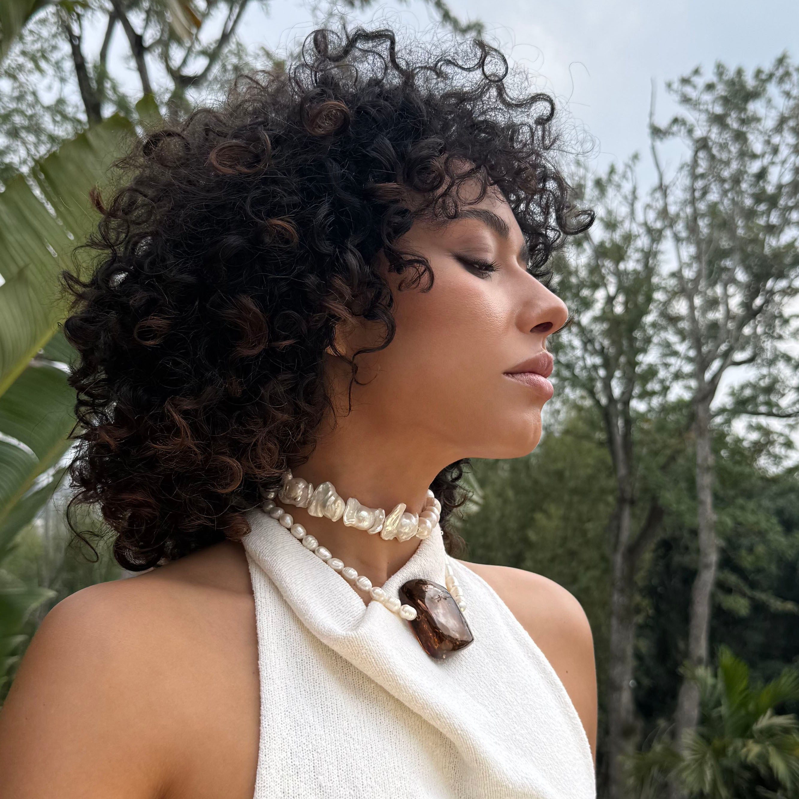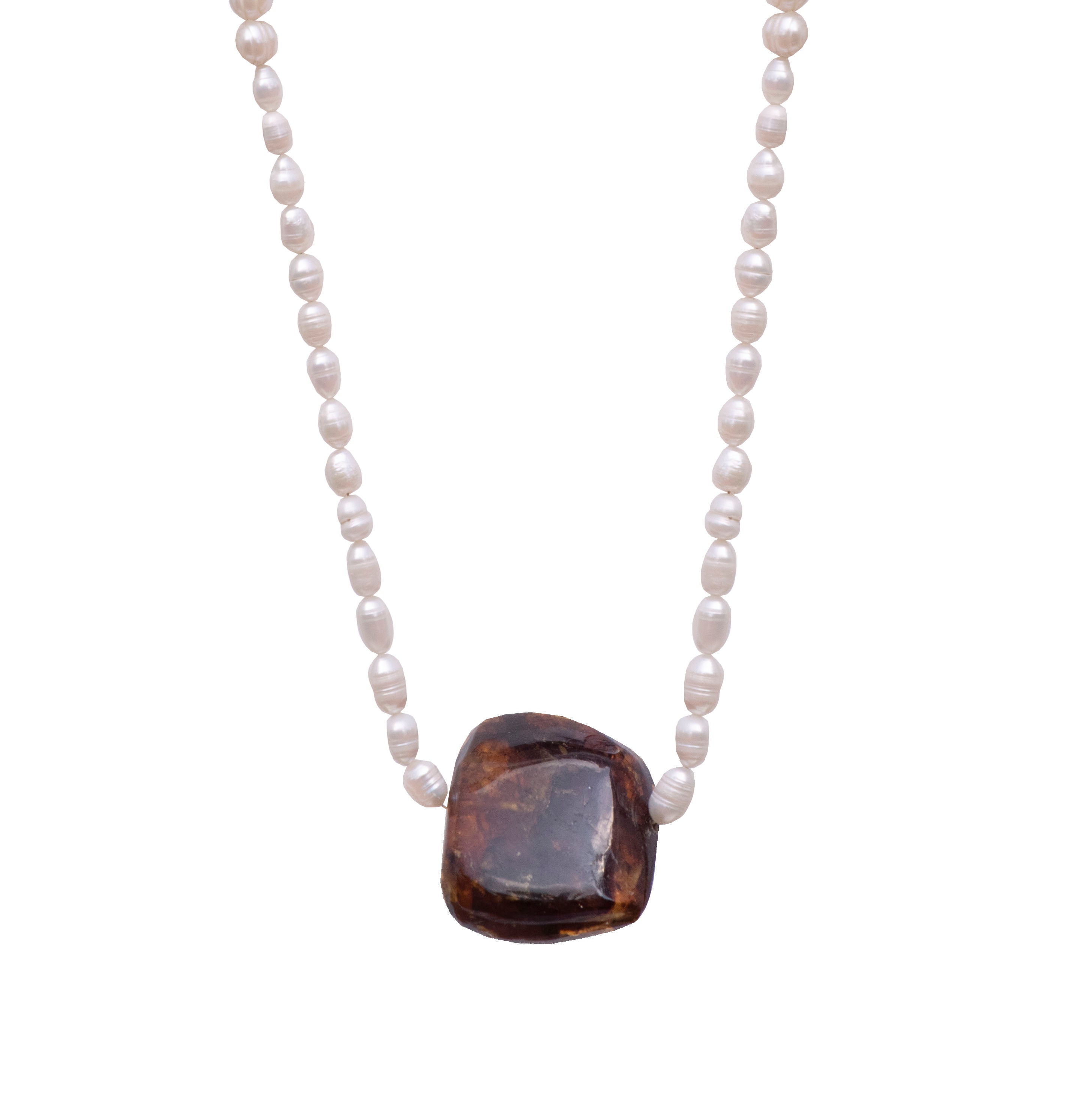 Collar de perlas y ambar café - piedras naturales