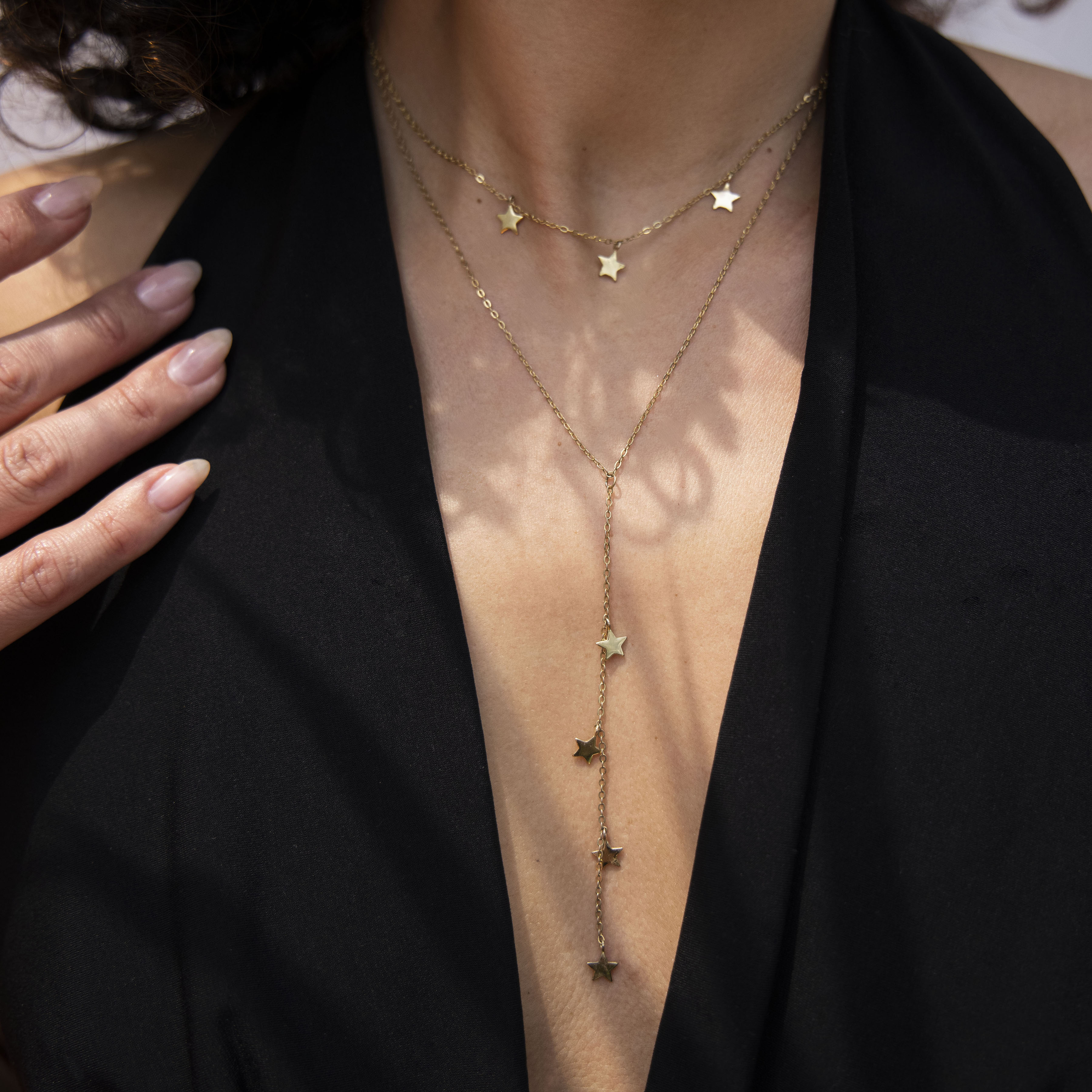 *Collar doble con estrellas dorado - chapa de oro 14k
