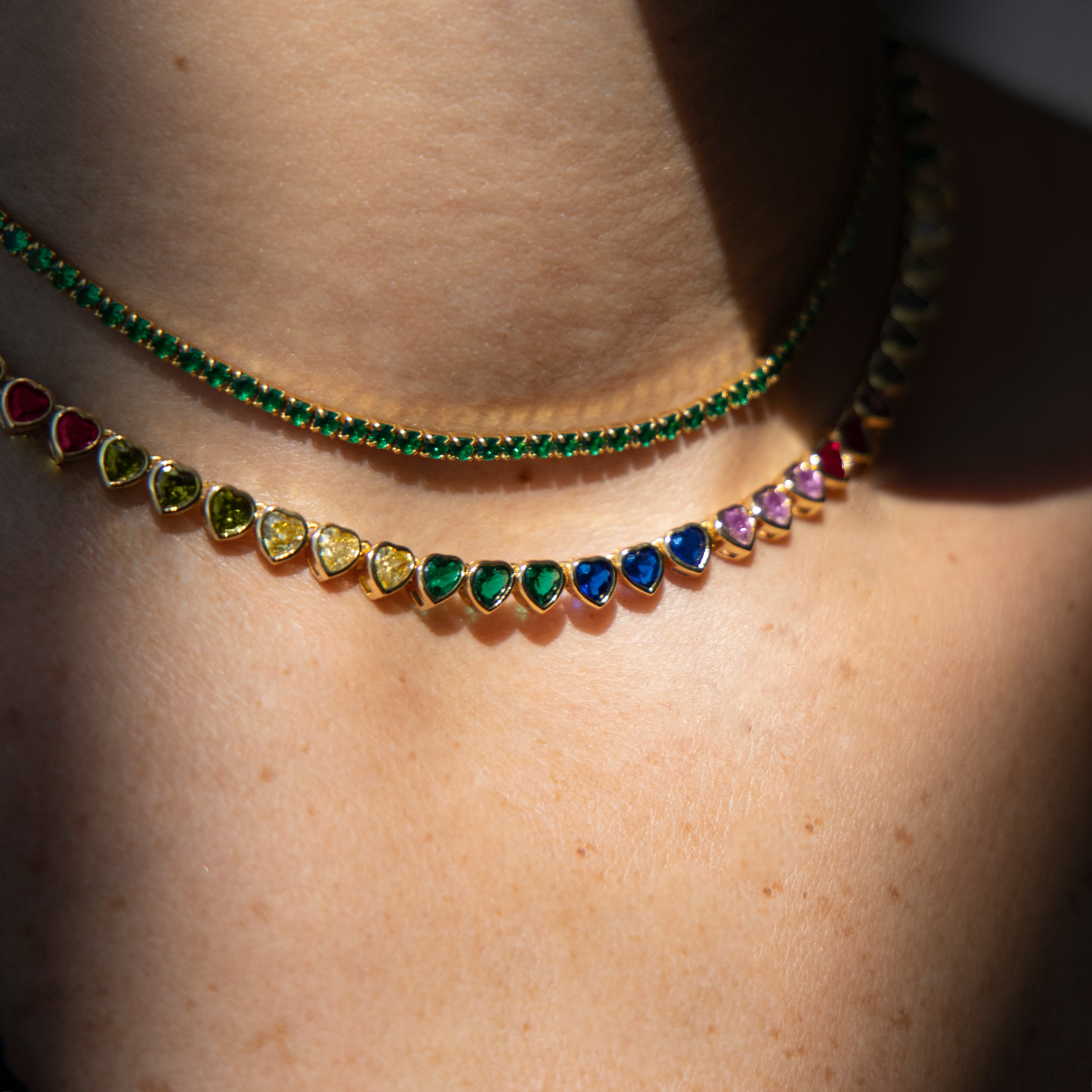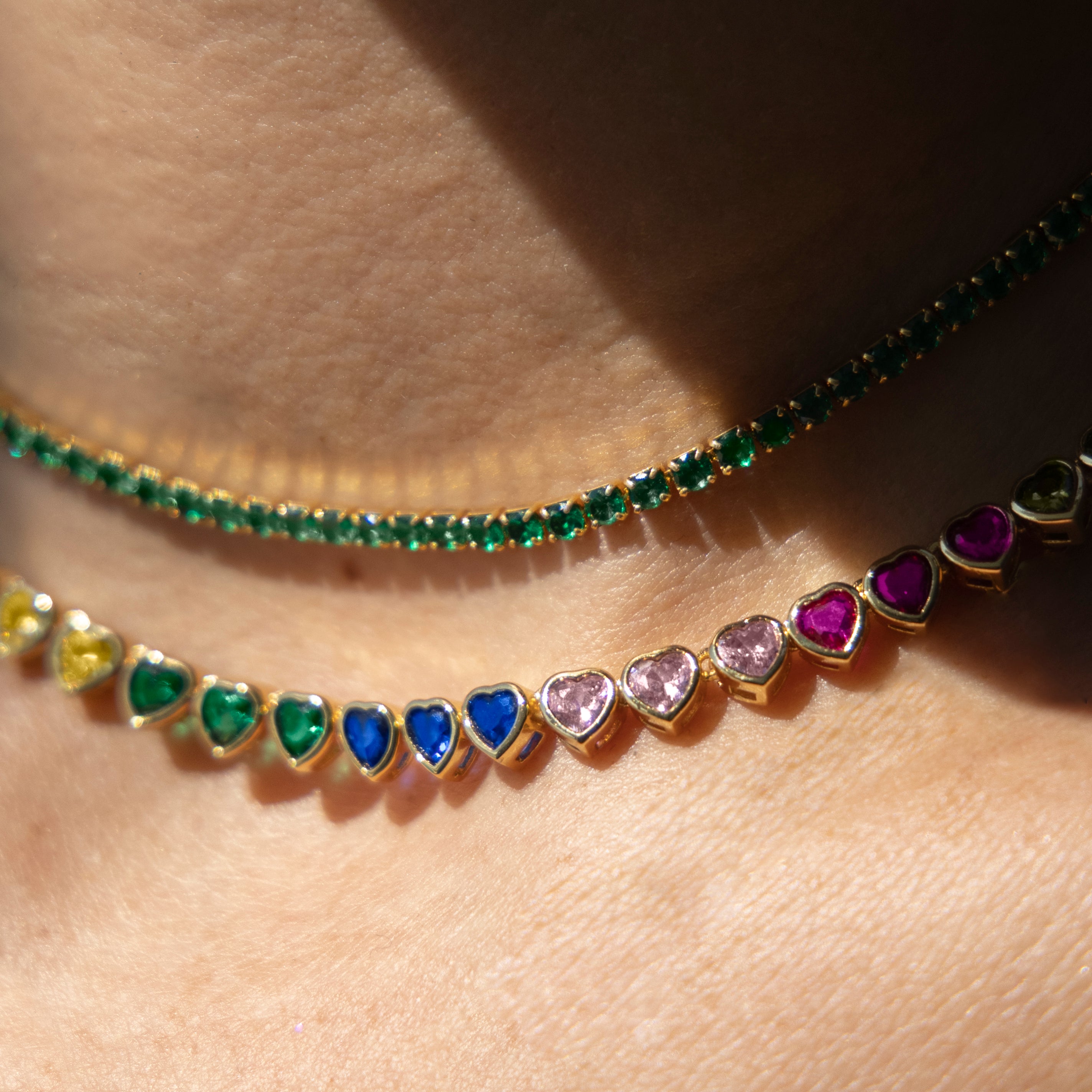 Explora la elegancia atemporal con nuestro choker tennis clásico de 2 mm en azul. La refinada chapa de oro 14k realza su estilo con un toque de lujo. Un accesorio versátil que fusiona la simplicidad del diseño clásico con la distinción del oro, perfecto para cualquier ocasión.