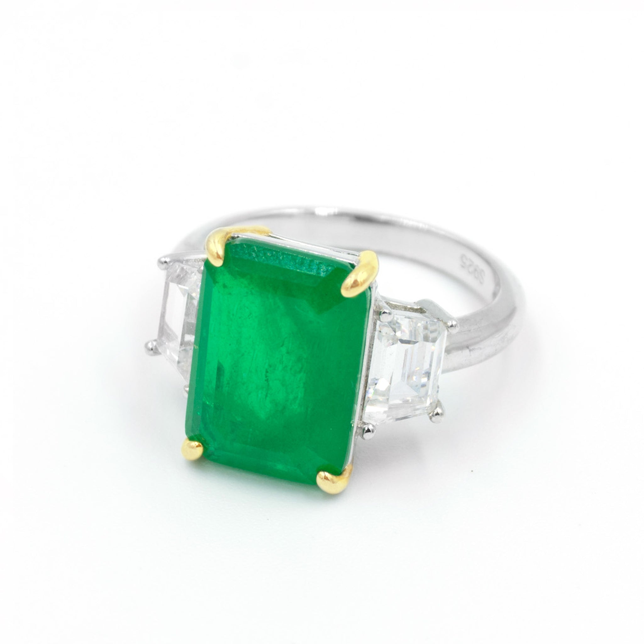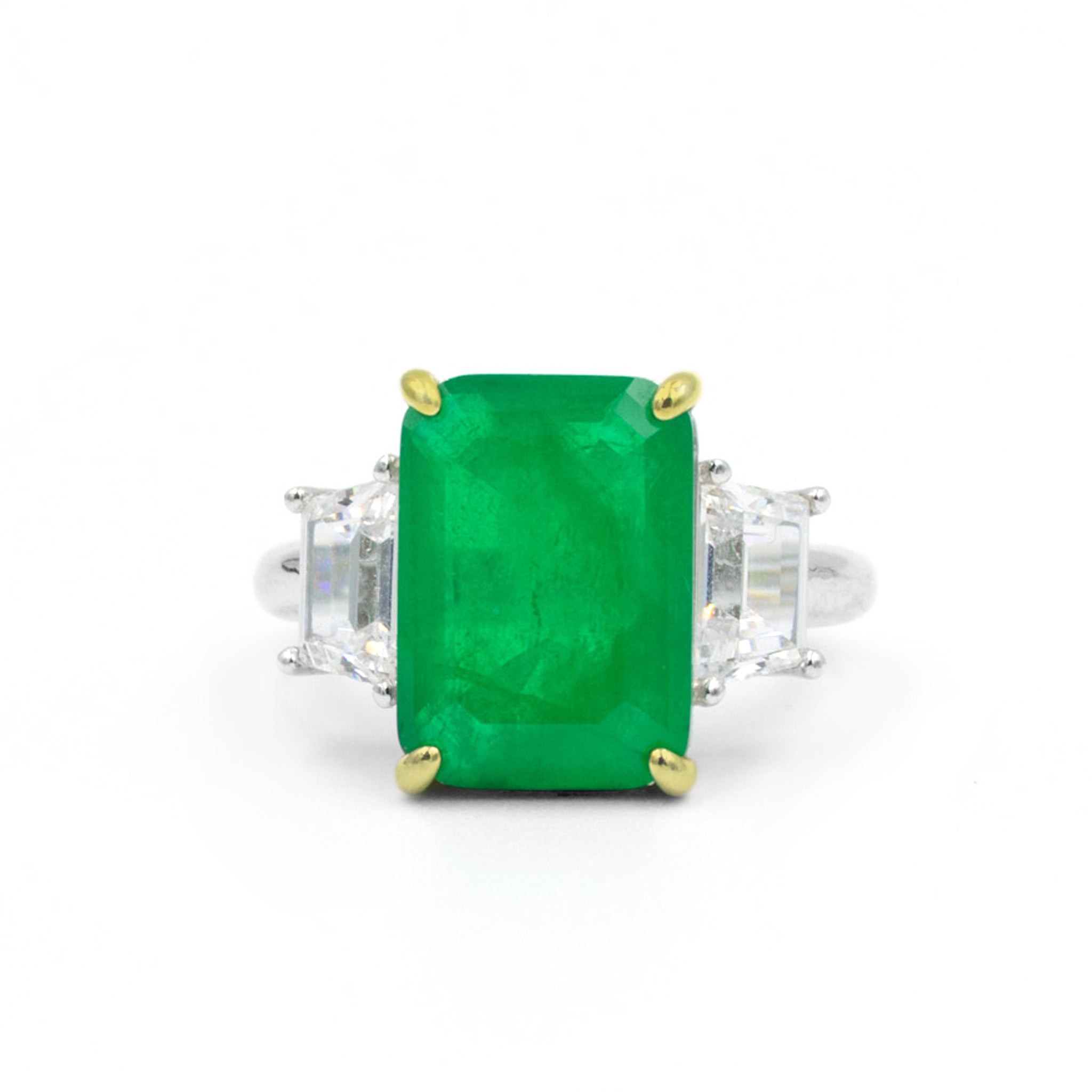 Anillo turmalina octagonal y trapecios turquesa - plata 925