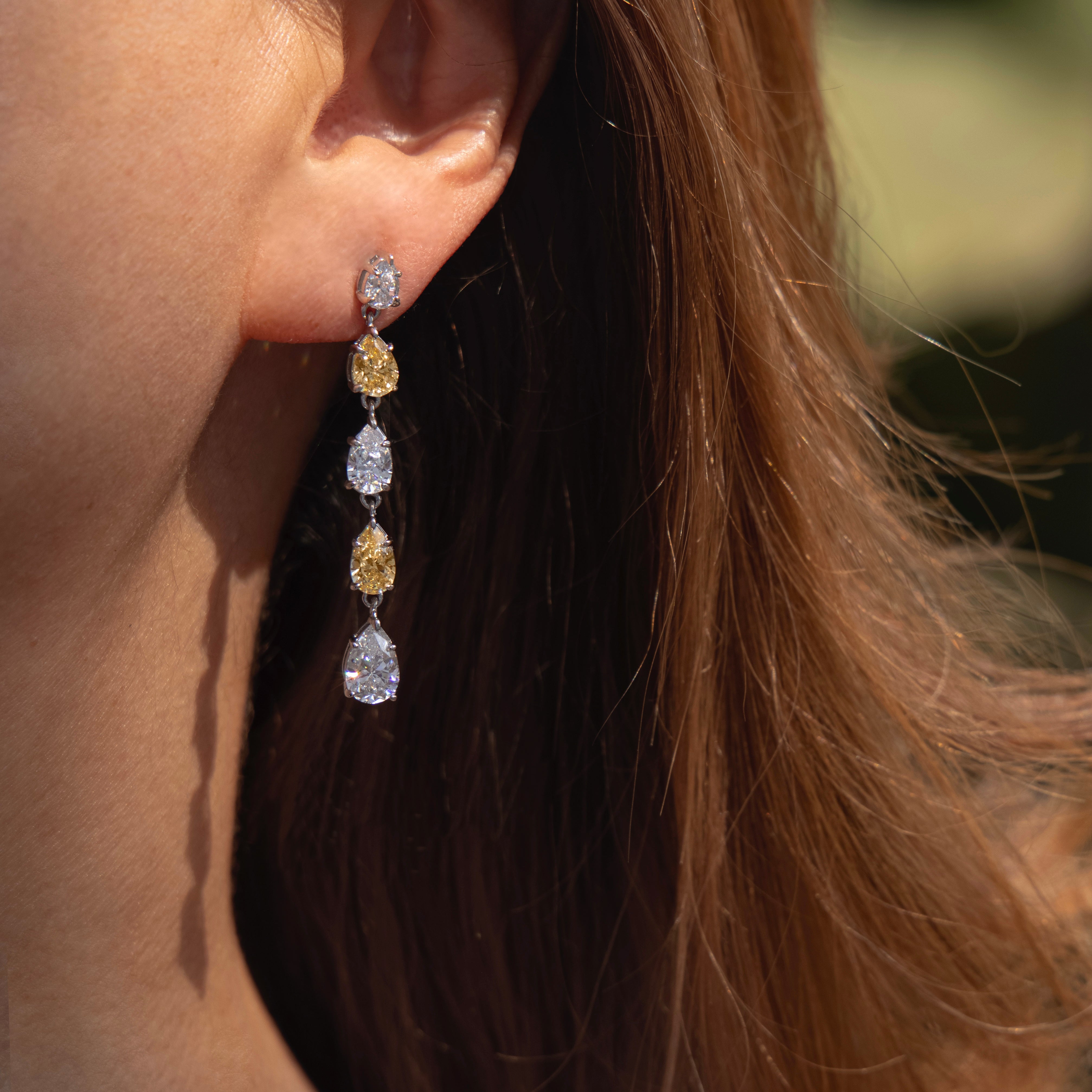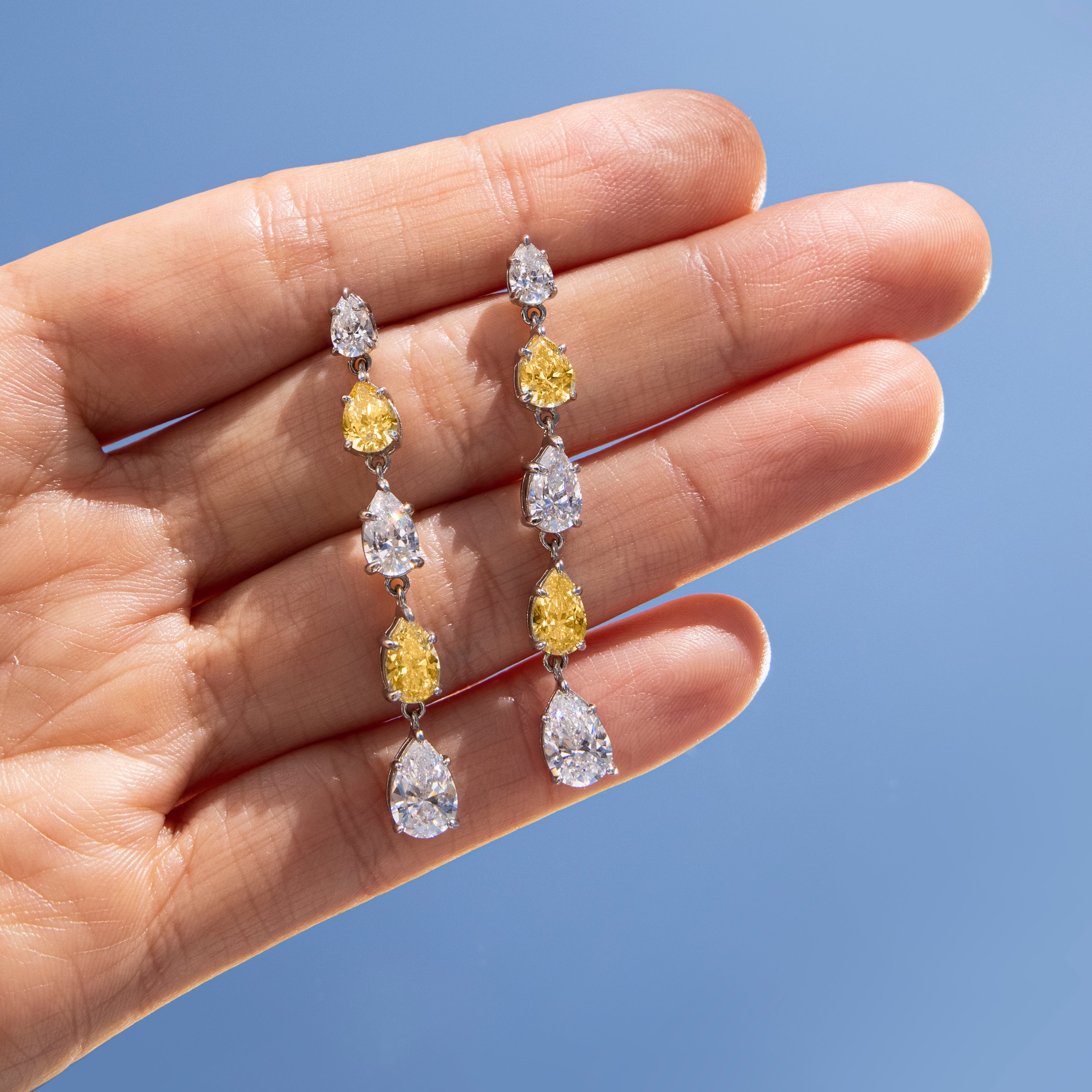 ¡Añade un toque de color a tu look con estos aretes largos de zirconias amarillo y blanco! Hechos de plata 925, las gotas brillantes te harán destacar. ¡Lúcete y siéntete bien con estos aretes divertidos y elegantes!