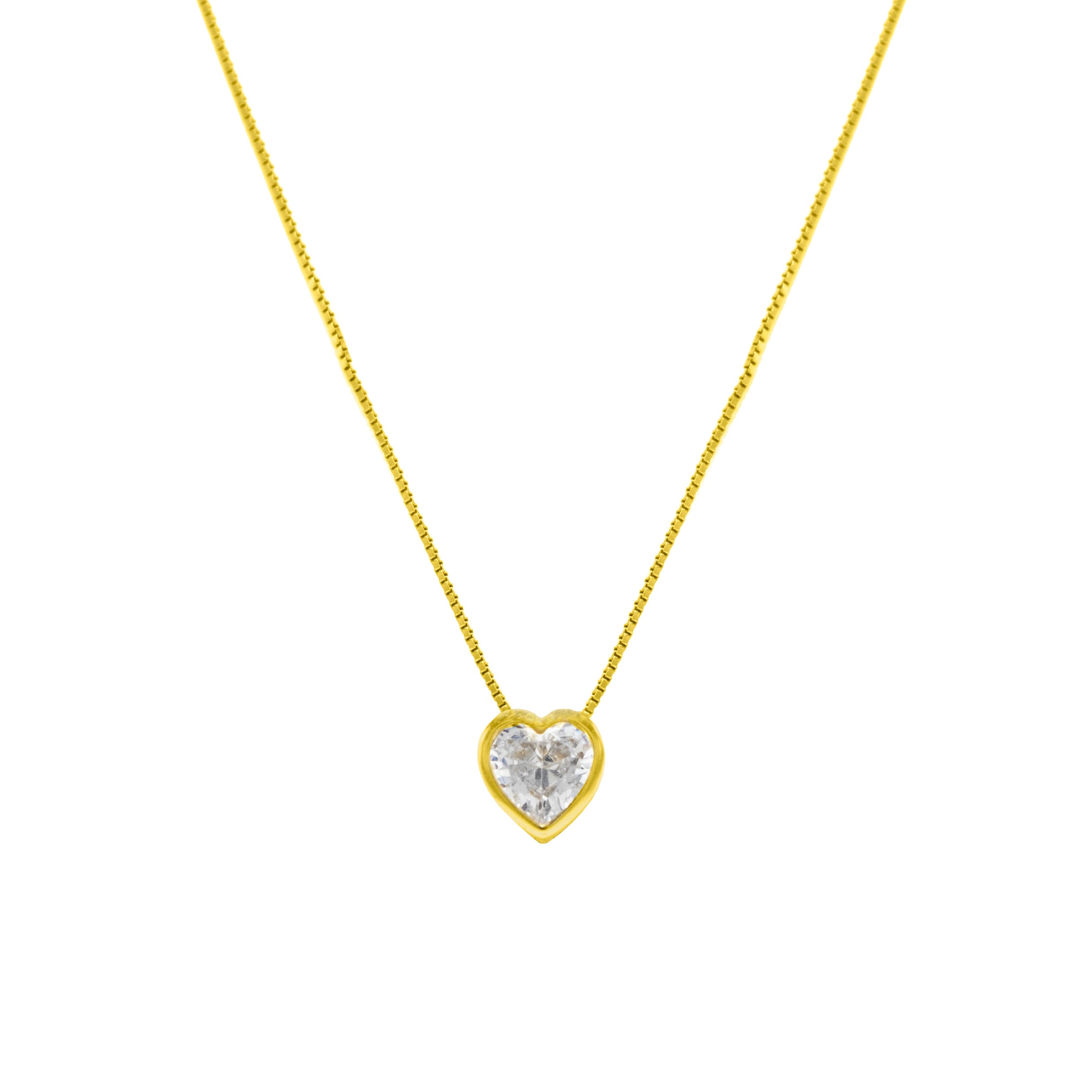 Collar dorado con corazón piedra blanca - chapa de oro 14k