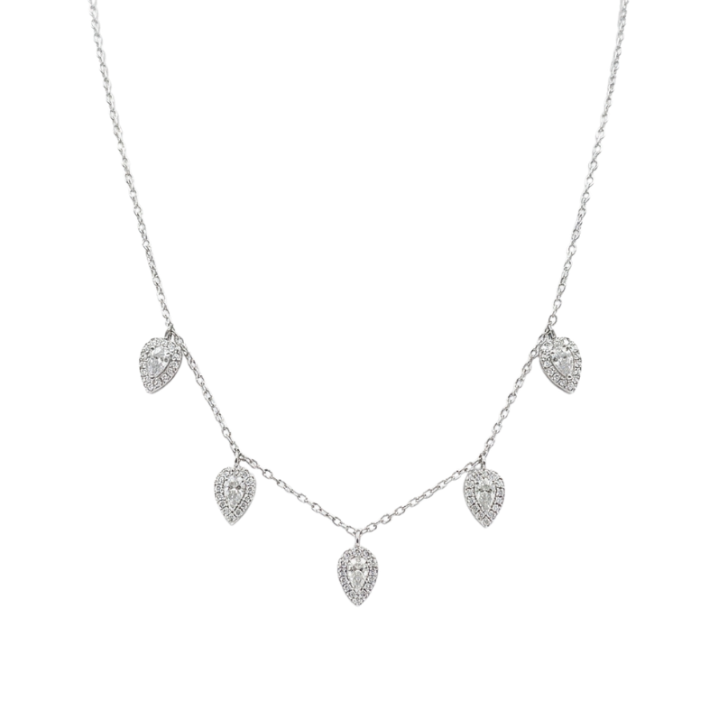 Añade un toque de elegancia a tu colección de joyas con este collar de moda en plata de Lavanda. Las deslumbrantes gotas de zirconias y la aureola le dan un aspecto clásico y esencial. Lúcelo solo o combínalo con cadenas más largas para crear un estilo de "layering" sofisticado. Este collar versátil y atemporal es perfecto para cualquier ocasión.