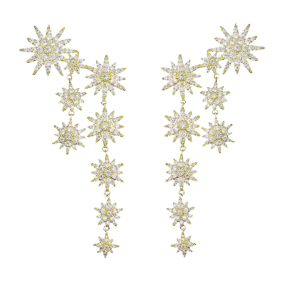 Atrévete a destacar con estos aretes largos encantadores de Lavanda. Su diseño de estrellas en tono dorado, elaborado en chapa de oro de 14k, los convierte en el complemento perfecto para elevar tu estilo. Destacan por su brillo y elegancia, añadiendo un toque de sofisticación a cualquier atuendo. Prepárate para brillar y hacer una declaración de moda con estos hermosos aretes de Lavanda.