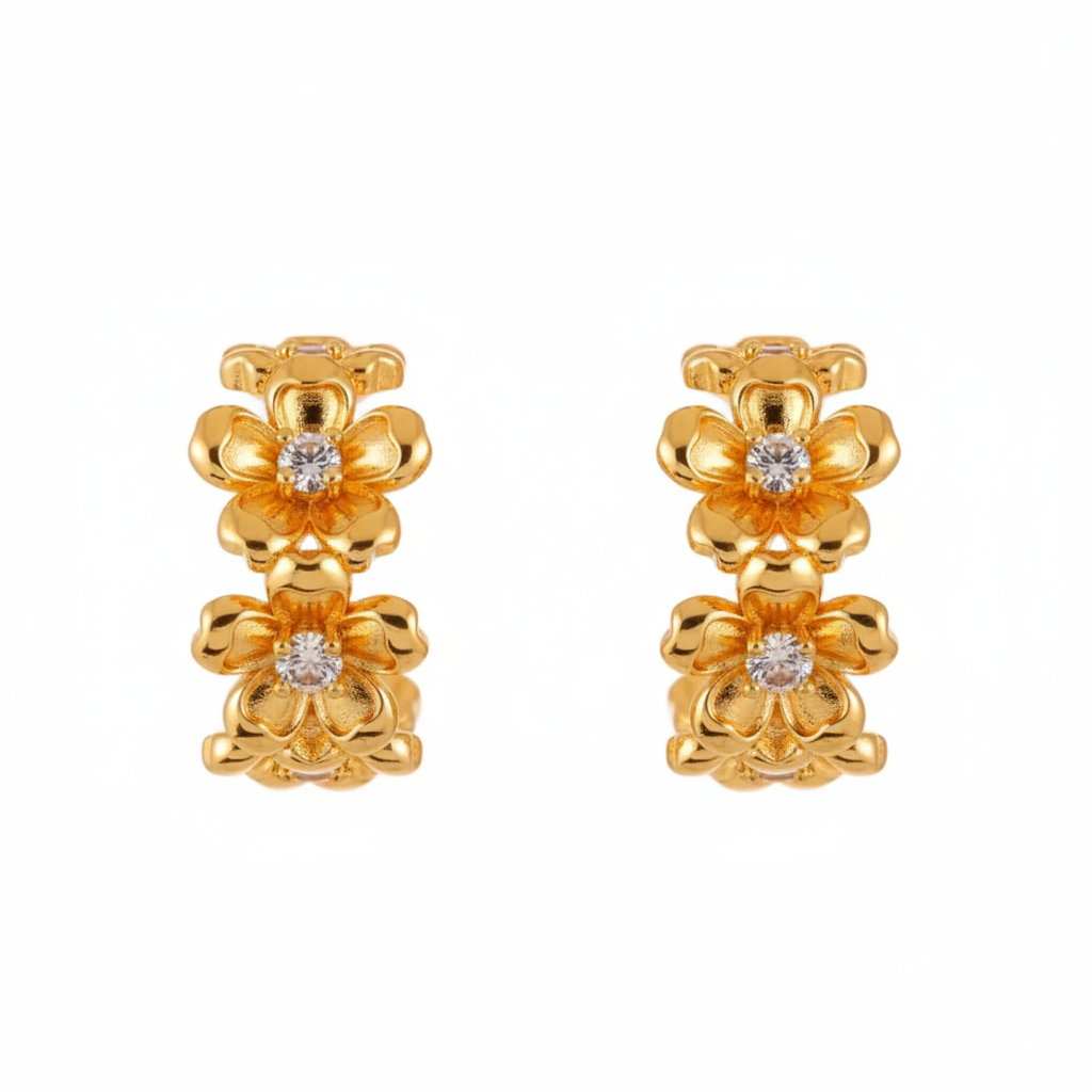 Arracadas chicas de flores dorado - chapa de oro 14k