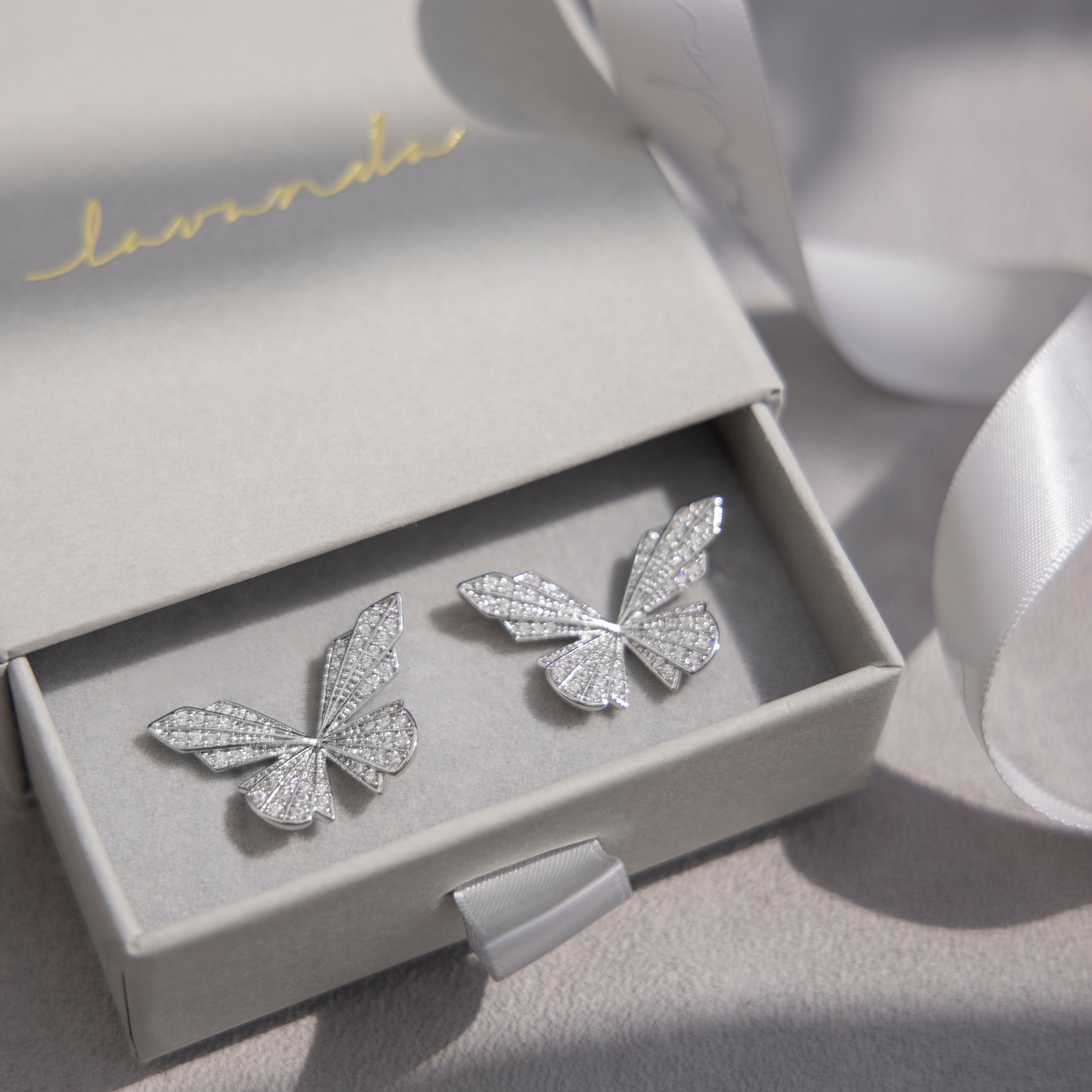 Aretes de mariposas geométricas que capturan la elegancia en su forma más pura. Diseñados con zirconias blancas brillantes engarzadas en plata con chapa de rodio, estos aretes combinan simetría moderna con un toque de sofisticación. Perfectos para quien busca accesorios versátiles que brillen tanto en ocasiones especiales como en el día a día. Un detalle delicado que transforma cualquier look con estilo atemporal.