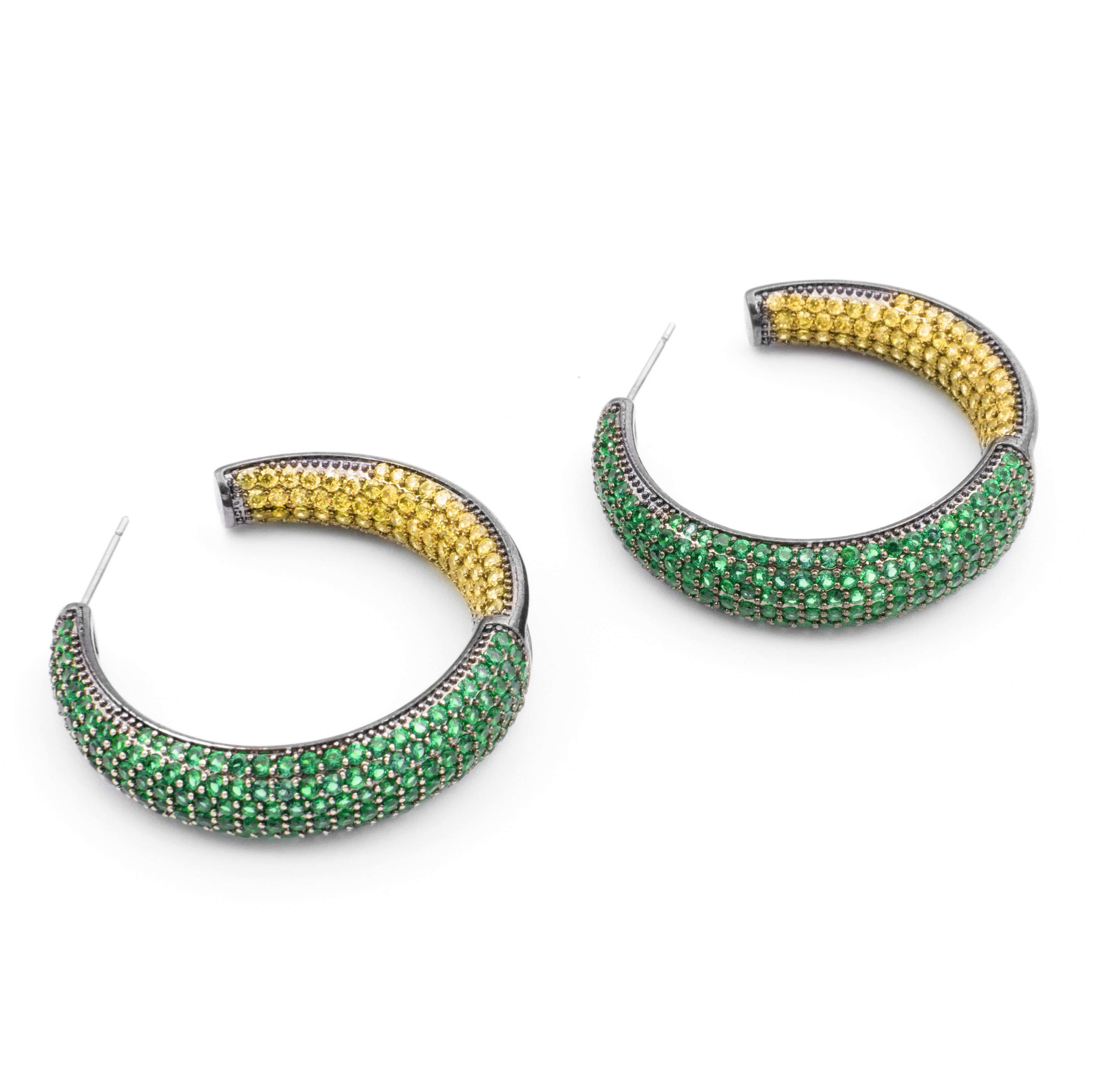 Da vida a tu estilo con estas encantadoras arracadas abiertas en un vibrante tono bicolor verde y amarillo. El acabado pavé agrega un toque de sofisticación a su diseño clásico, mientras que la chapa de rodio les brinda un brillo duradero. Estos aros son versátiles y se adaptarán sin esfuerzo a cualquier ocasión, desde looks casuales hasta eventos elegantes. Con su estilo atemporal y vanguardista, llevarás con orgullo estas magníficas arracadas de Lavanda.