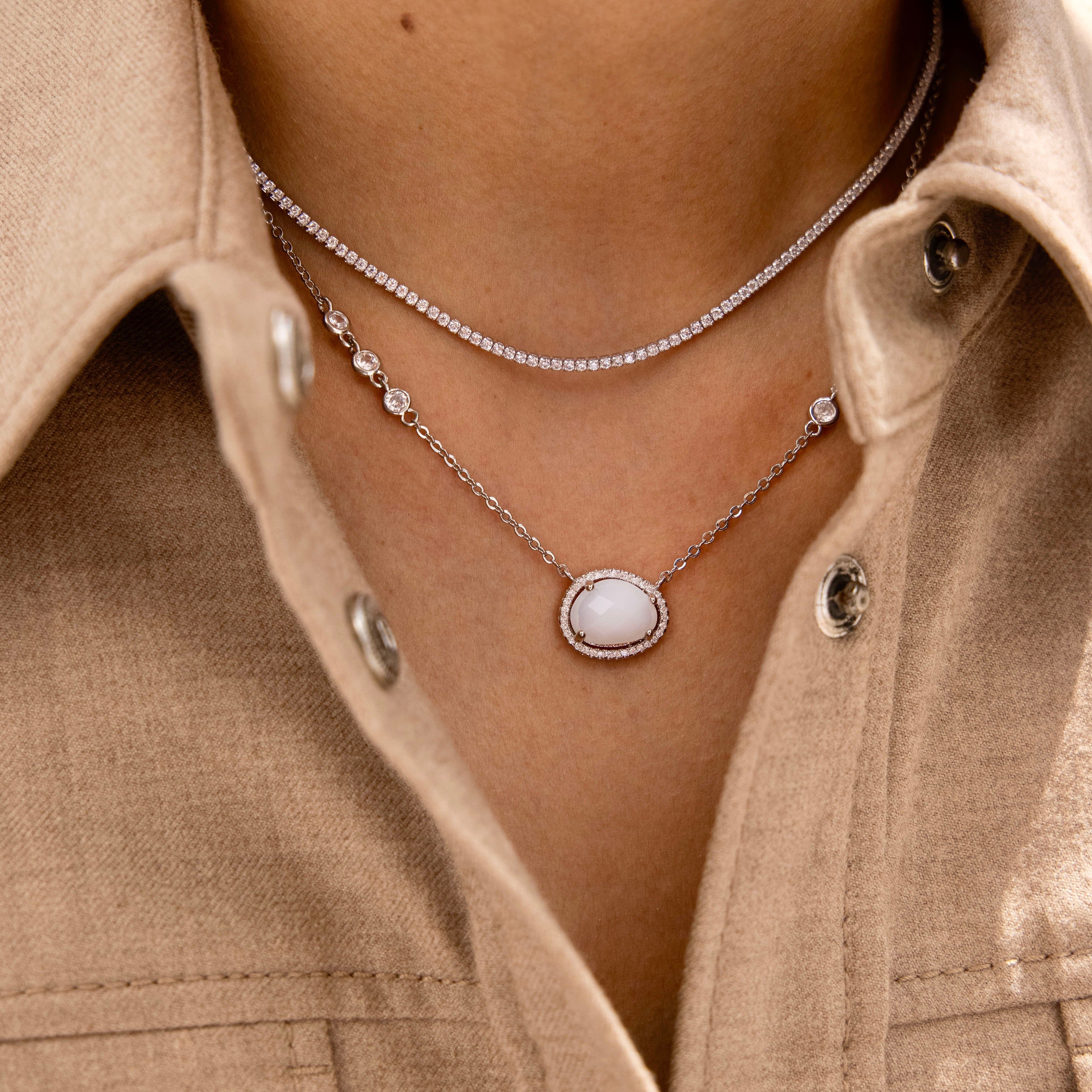 Collar de zirconias biseladas y piedra blanco - plata 925