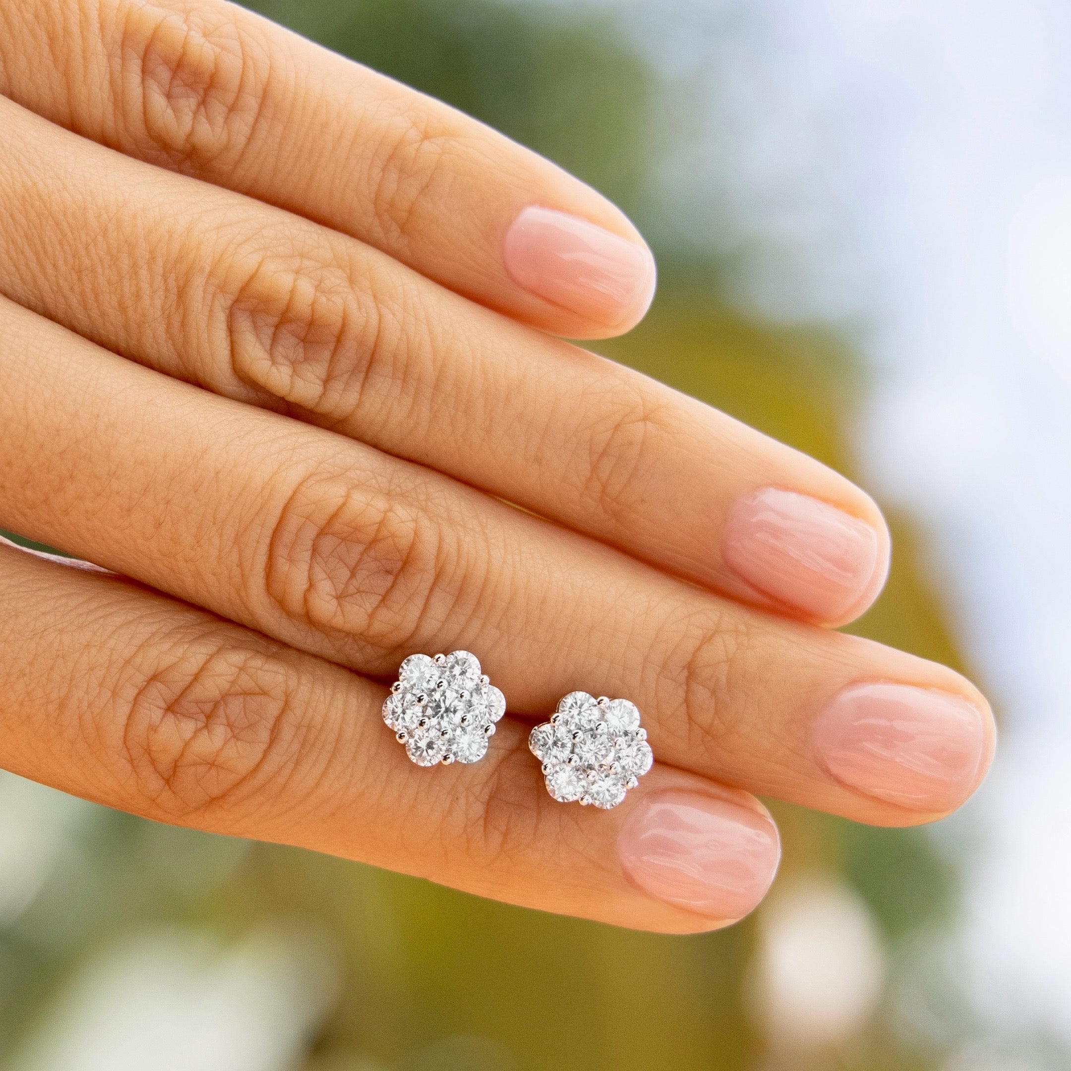 ¡Luce florecita en tus orejas con estos broqueles de flores blancas! Hechos con zirconias blancas redondas y una chapa de rodio, estos broqueles son el accesorio perfecto para cualquier ocasión. ¡Agrega un toque de brillo y diversión a tu estilo con estos broqueles únicos!