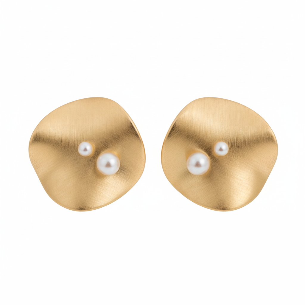 Aretes que capturan la elegancia en su forma más pura. Estos redondos dorados presentan dos mini perlas delicadas que danzan en el centro, creando un contraste sofisticado entre el brillo del oro y la suavidad perlada. Con chapa de oro 14k, son la compañía perfecta para cualquier momento, desde el café mat