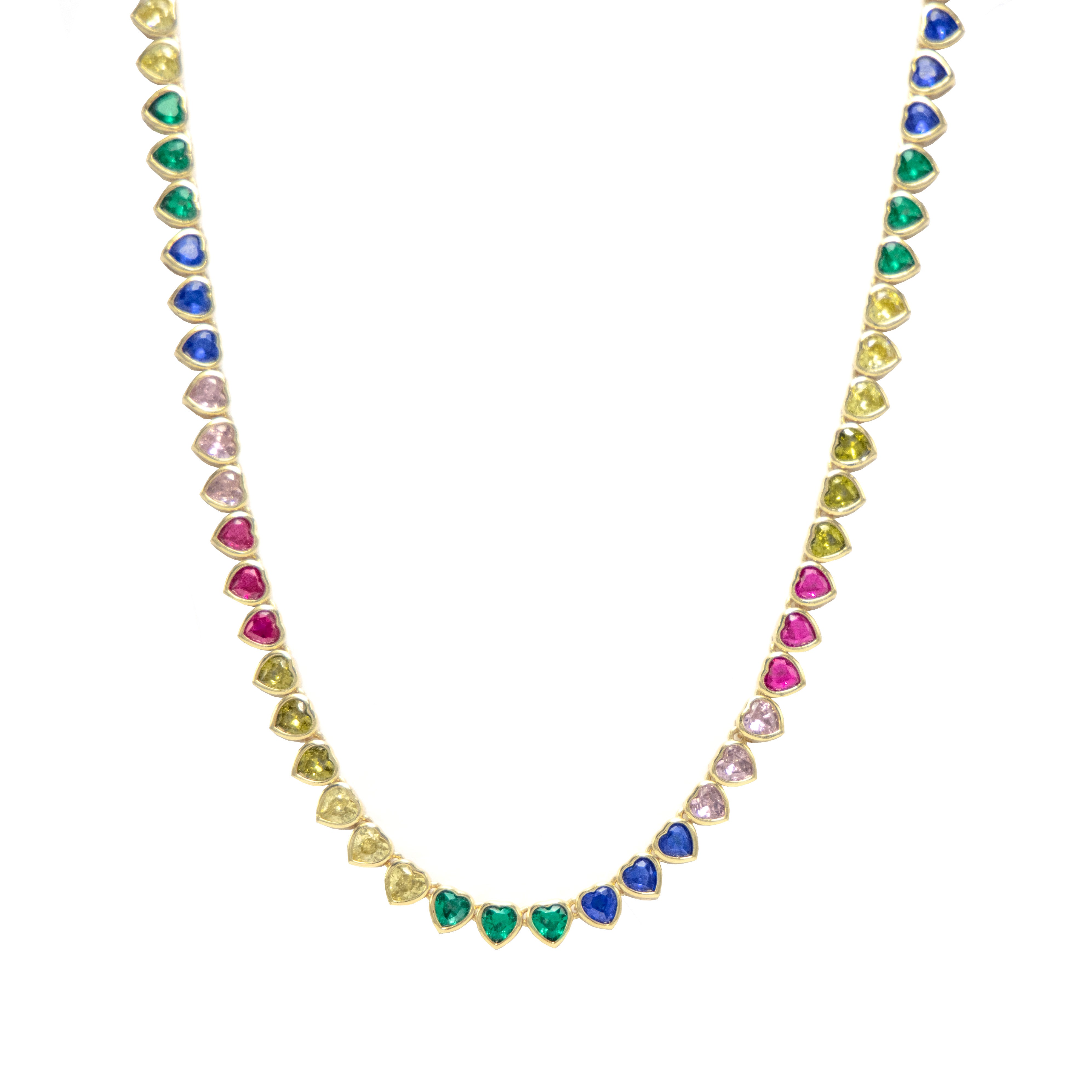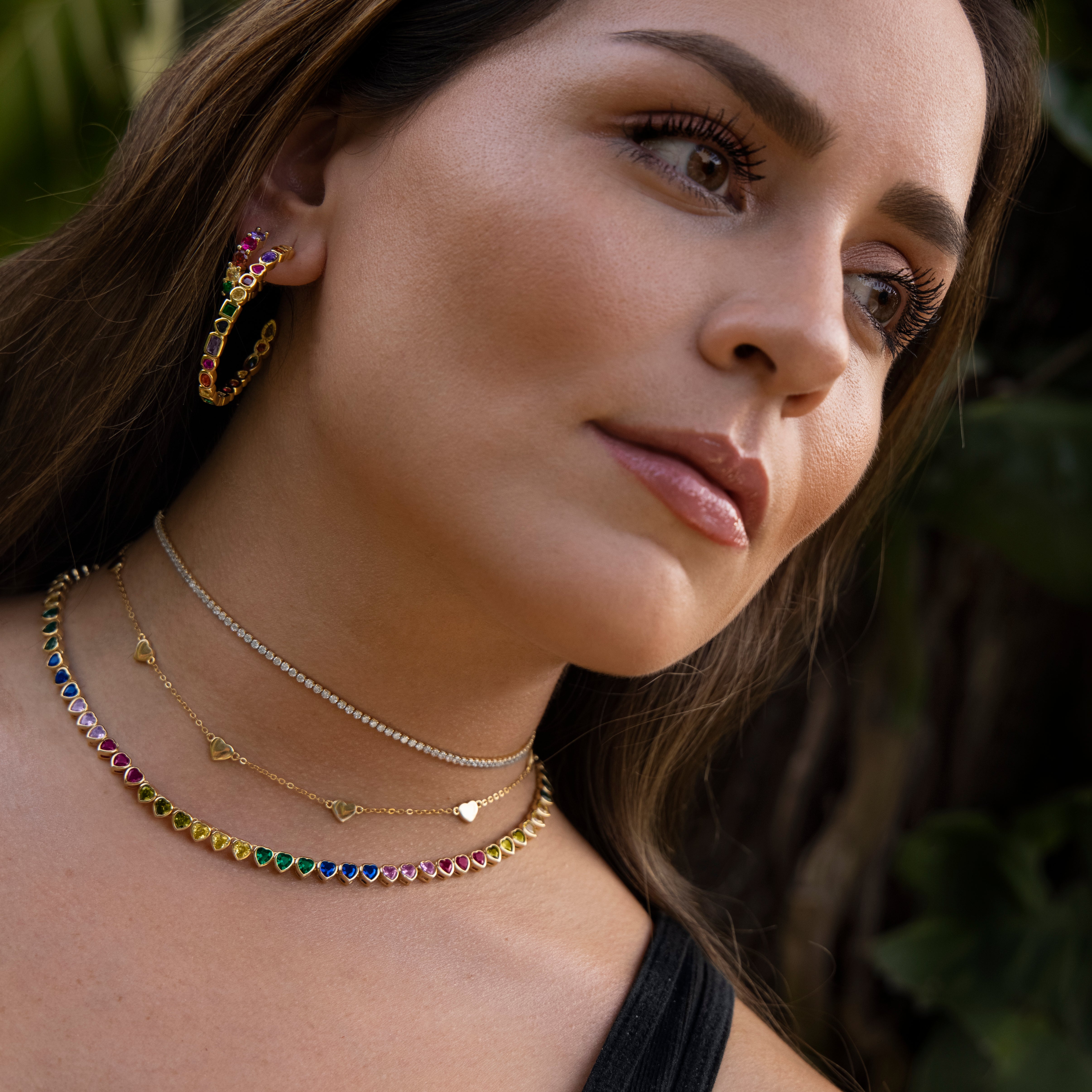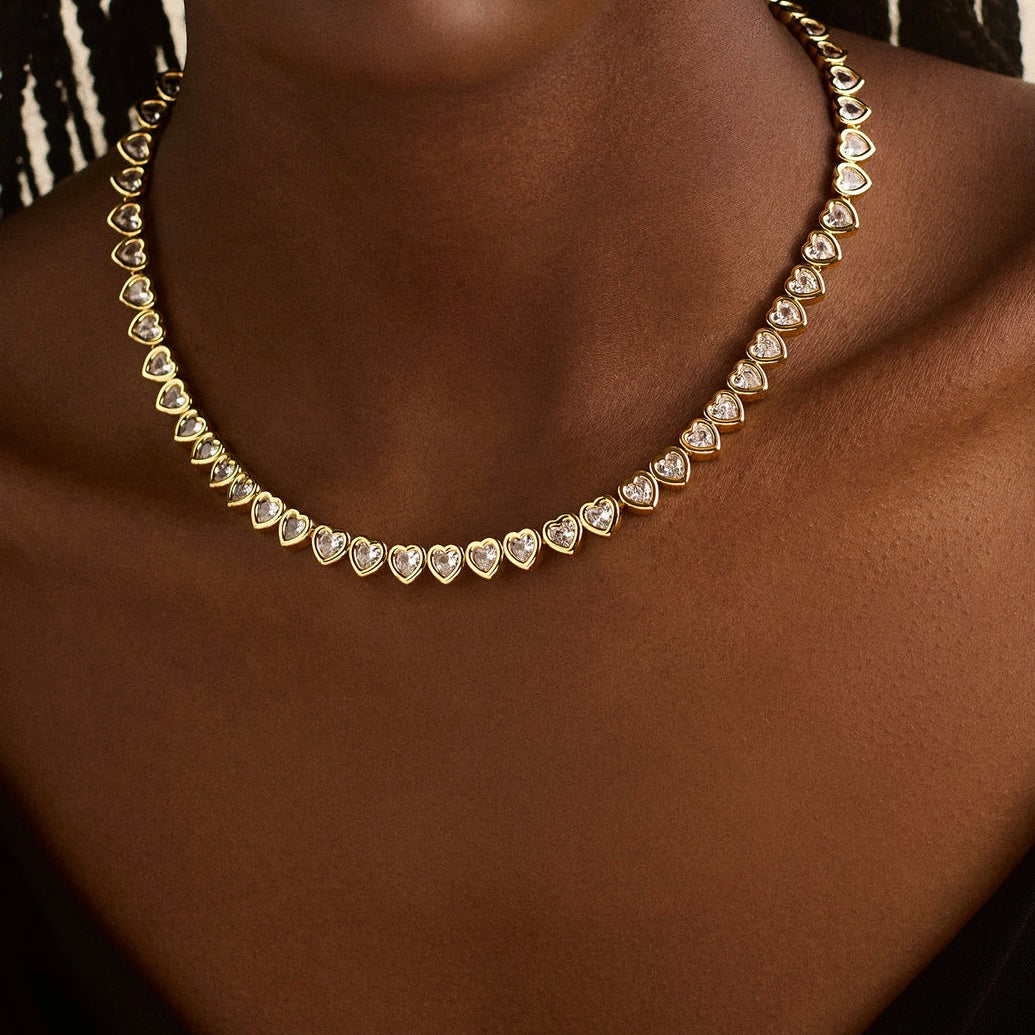 Luce con un destello dorado y el encanto de los corazones en la impresionante Gargantilla Tennis de Lavanda. Cada corazón biselado, meticulosamente engastado en esta joya bañada en chapa de oro 14k, emana amor y elegancia. Su diseño único y brillante captura la atención y añade un toque de romance a tu estilo. Usa esta cautivadora gargantilla con confianza y permite que su resplandor dorado te envuelva en un aura de sofisticación y glamour. Celebra el amor y el brillo con la magnífica Gargantilla Tennis de Corazones Biselados de Lavanda.
