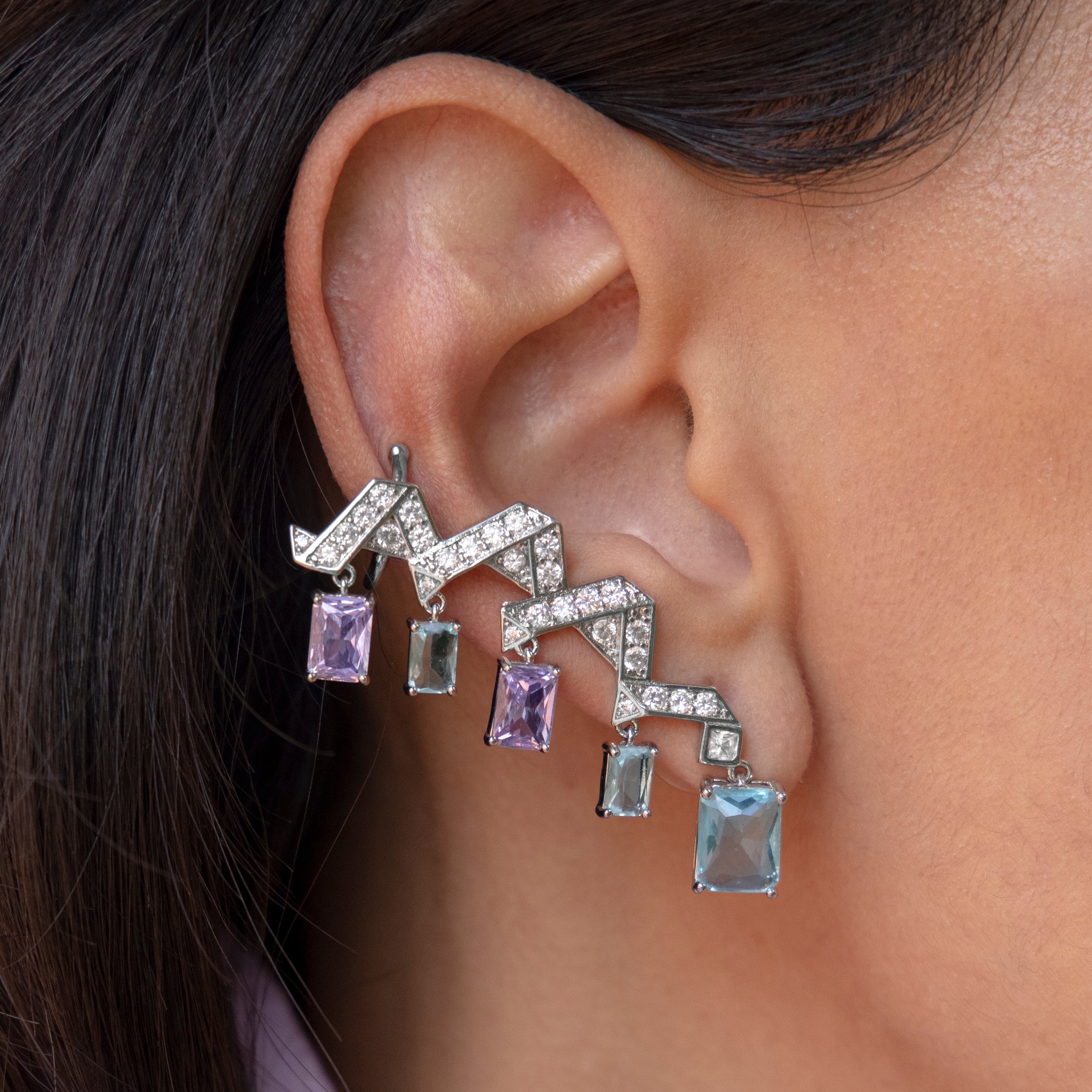 Arracadas dobles abiertas turquesa - chapa de rodio