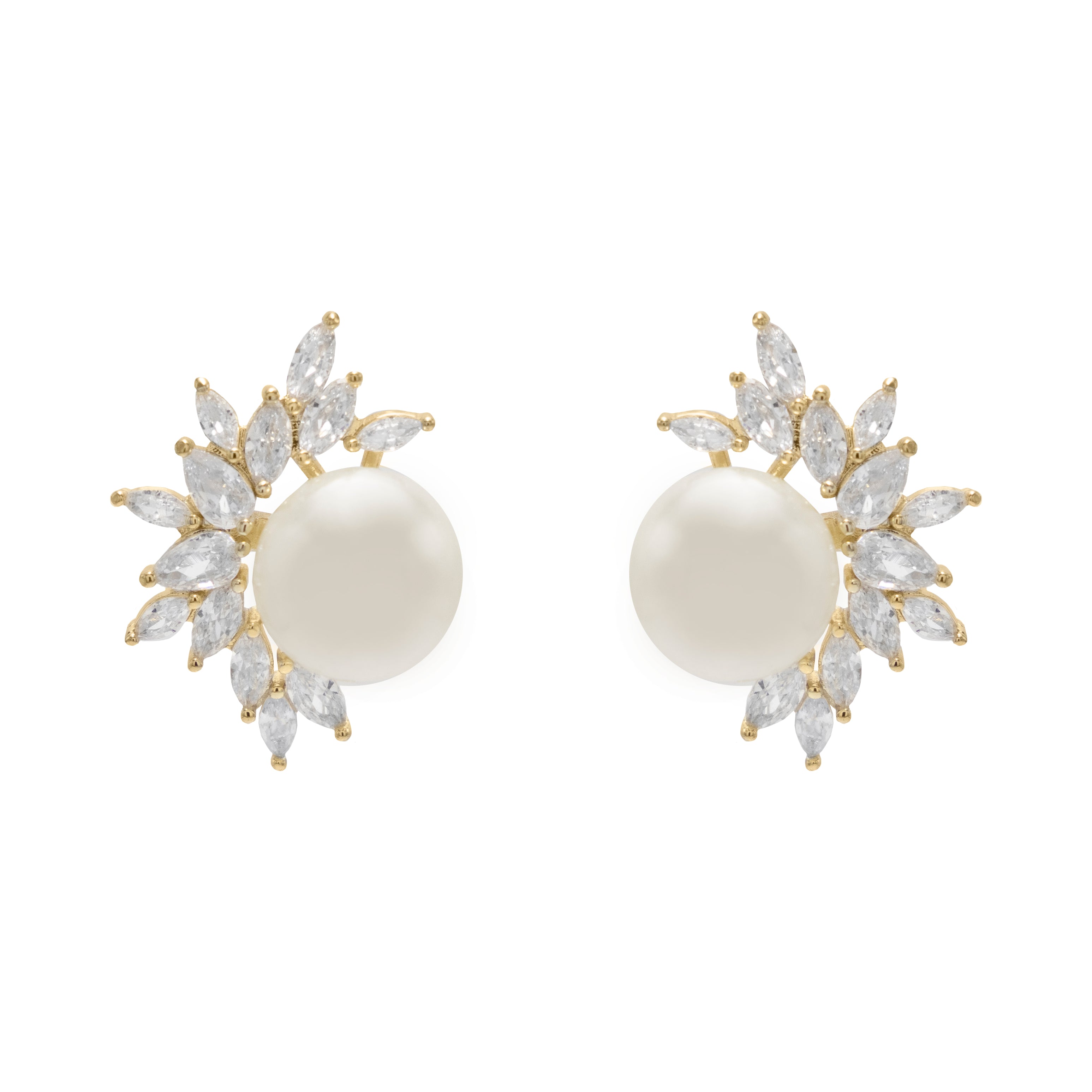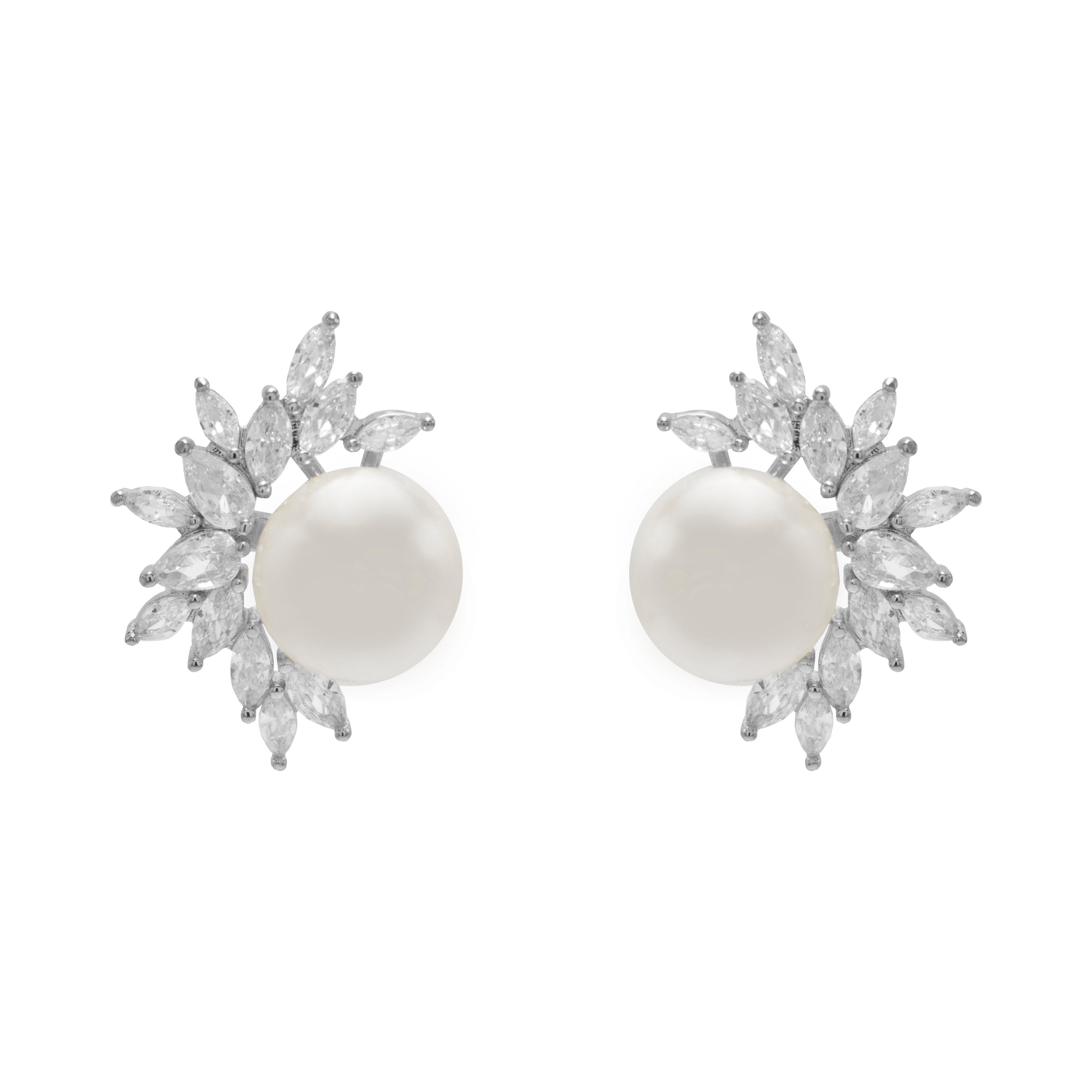 Aretes cortos de perlas y adorno de zirconias plata - chapa de rodio