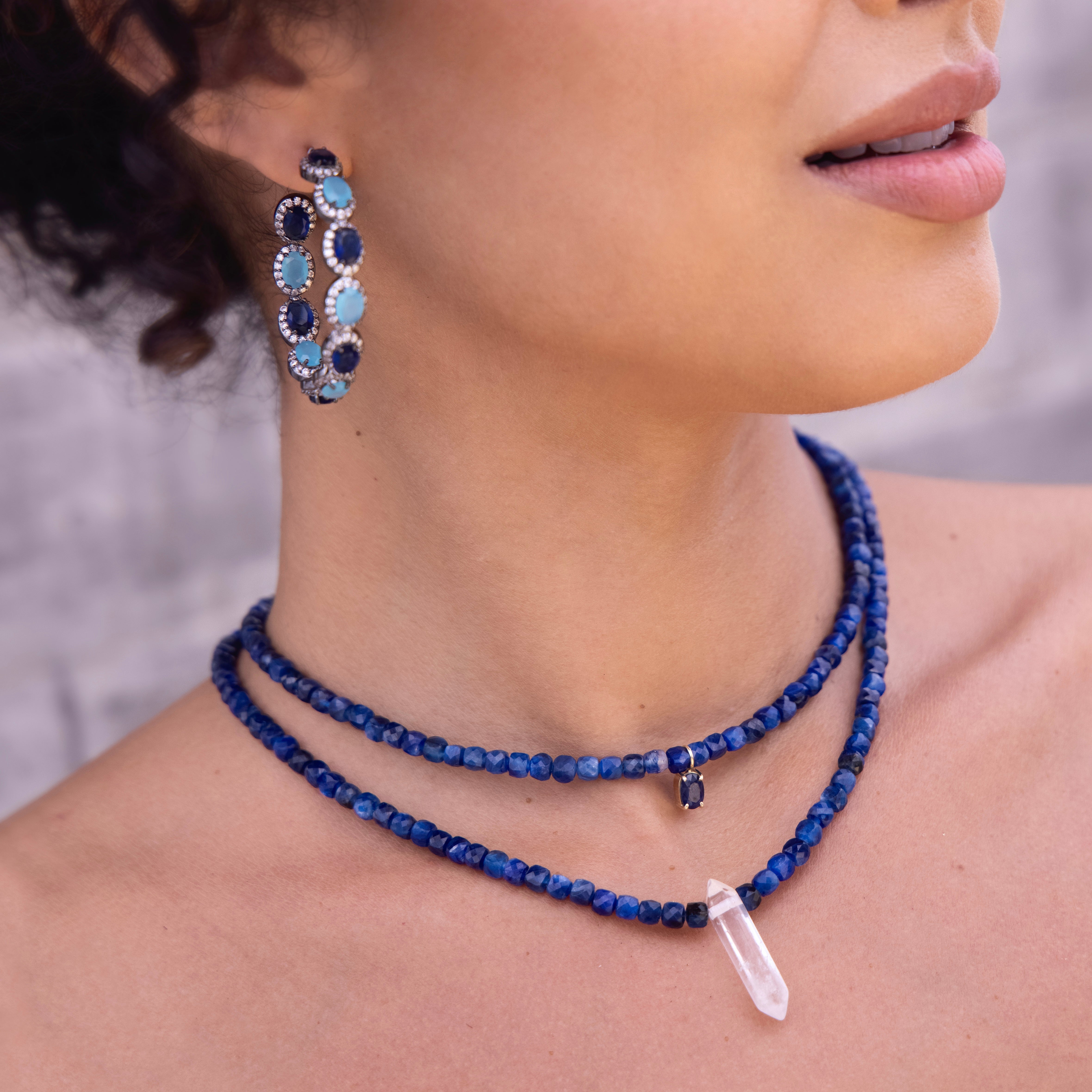 Collar corto cuarzo blanco y zafiros cubo azul - chapa de oro