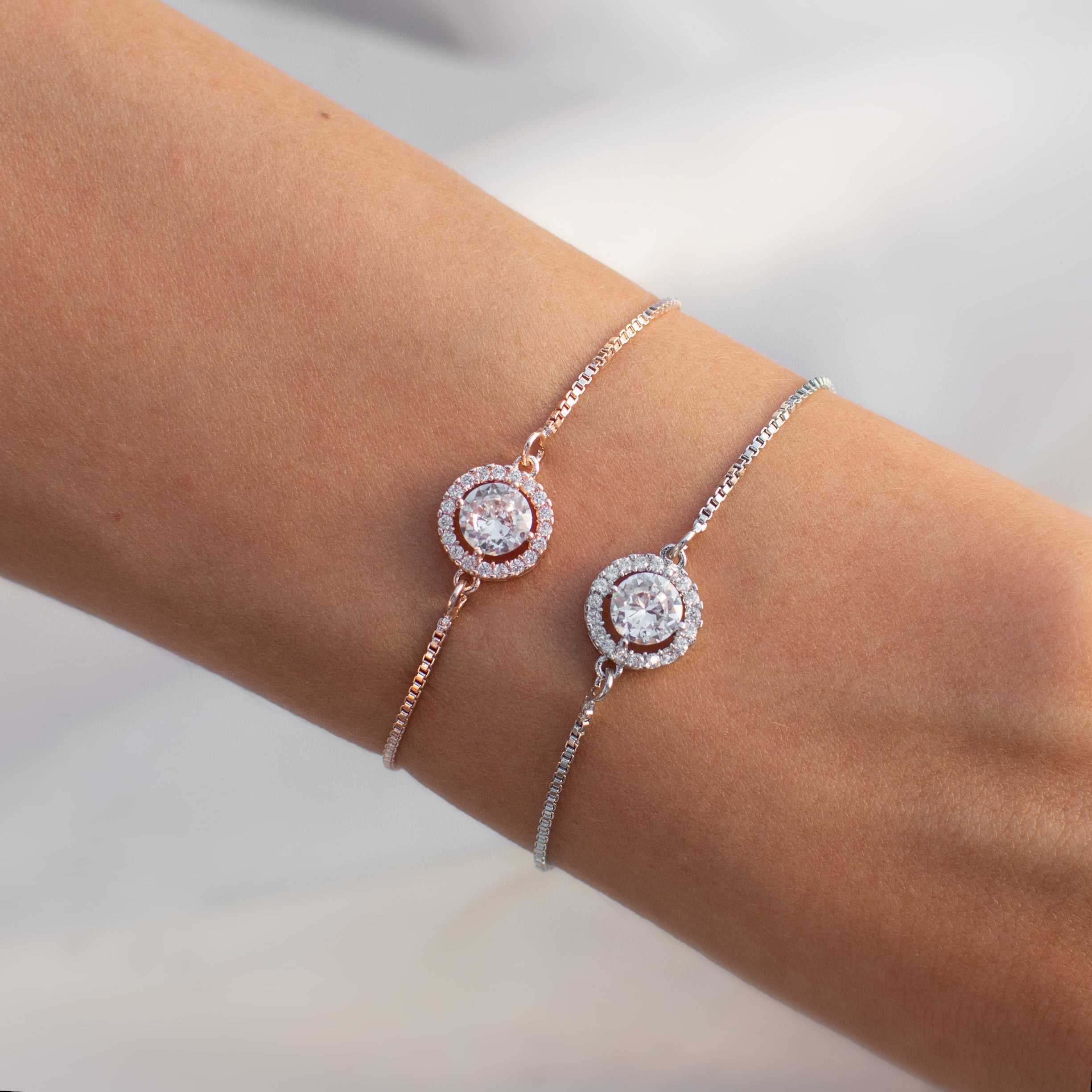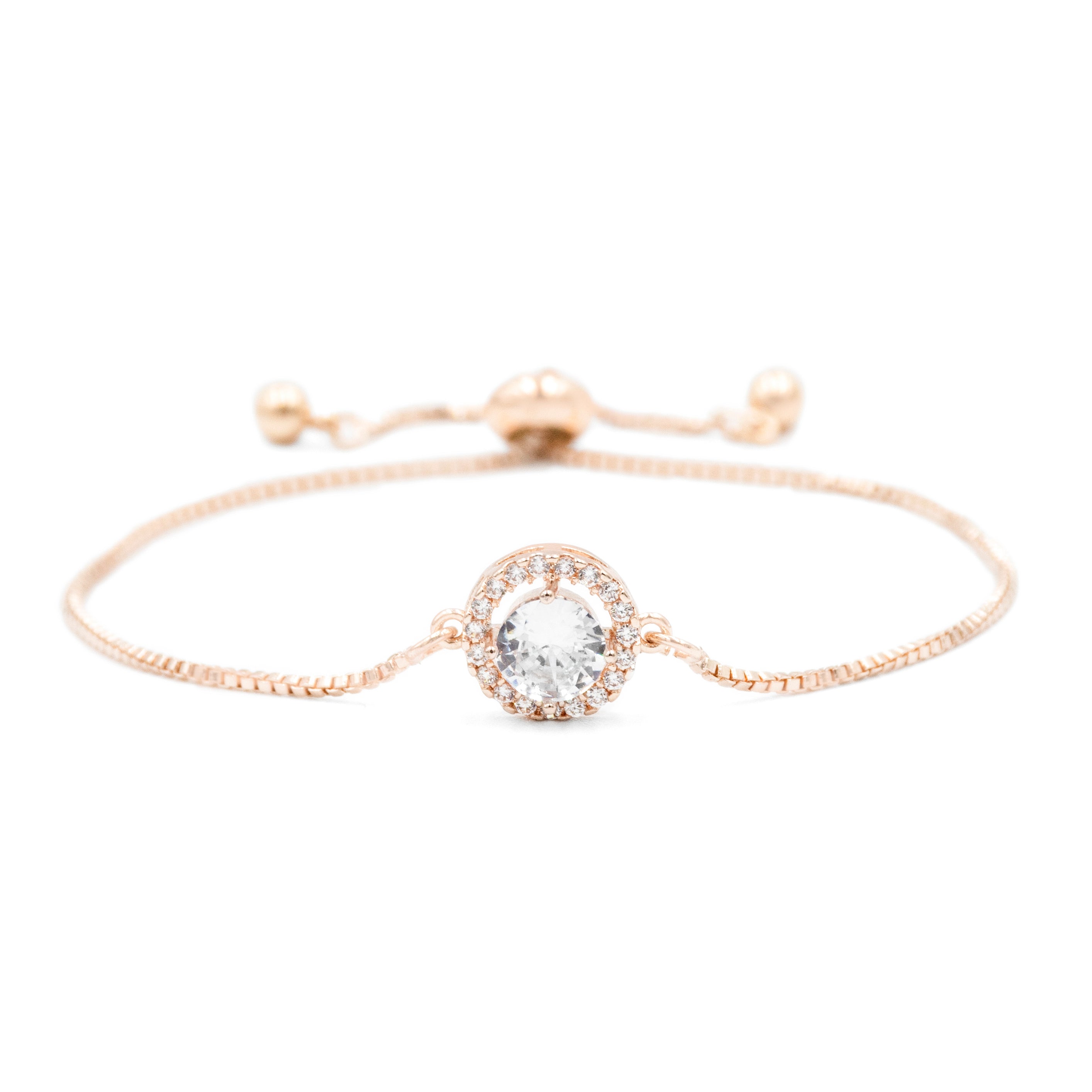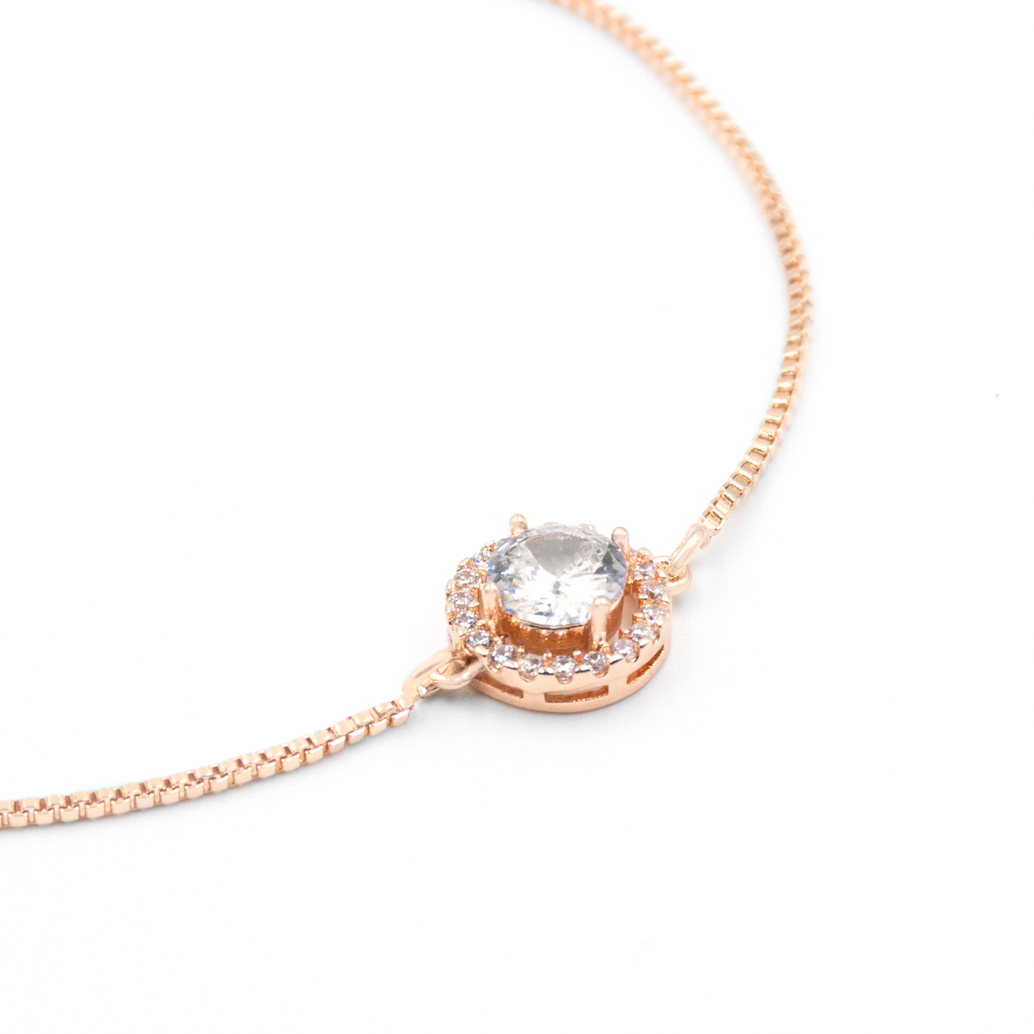 Pulsera con piedra redonda y halo de zirconias plata - ajustable - chapa de rodio