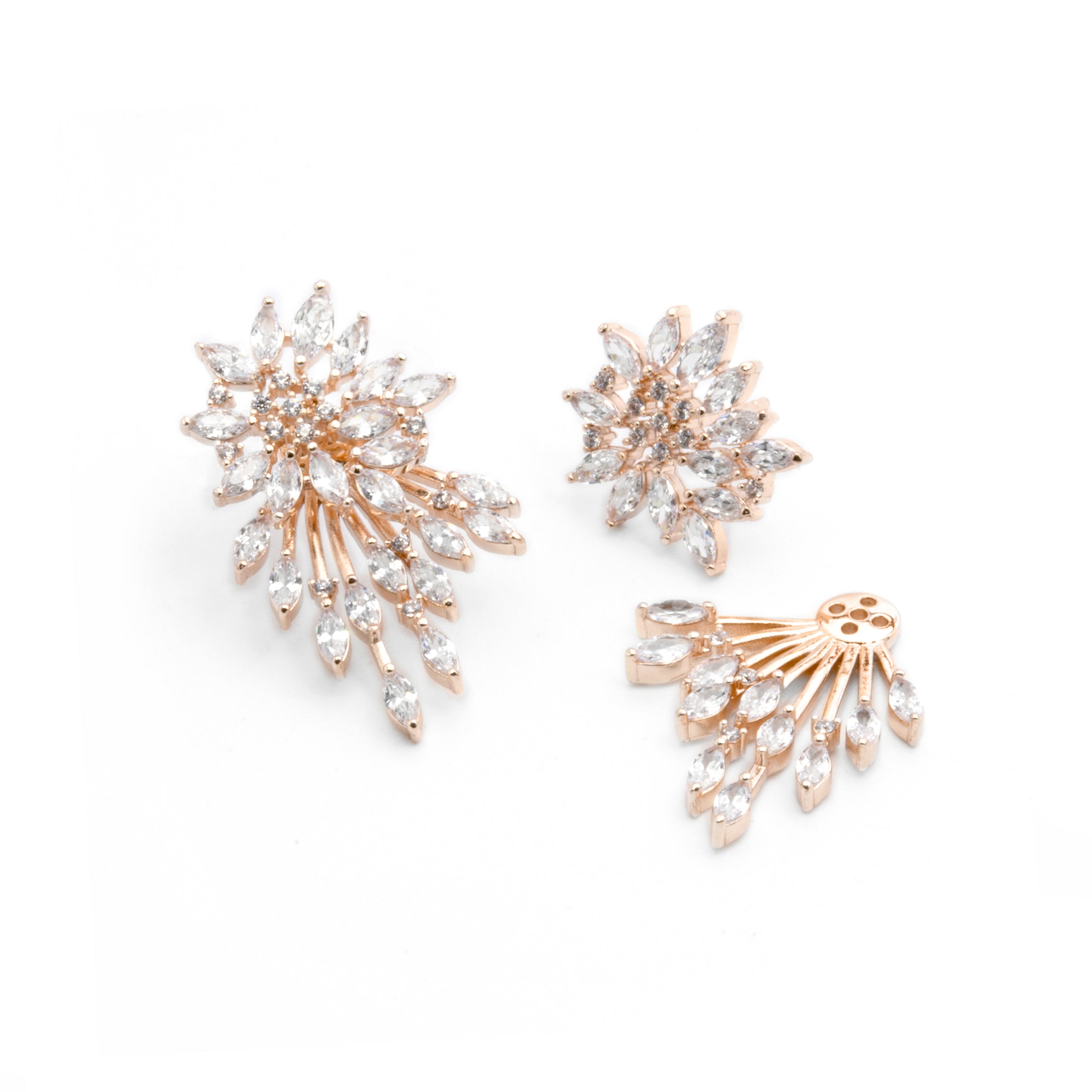 Aretes front back destello grande oro rosa - chapa de oro 14k
