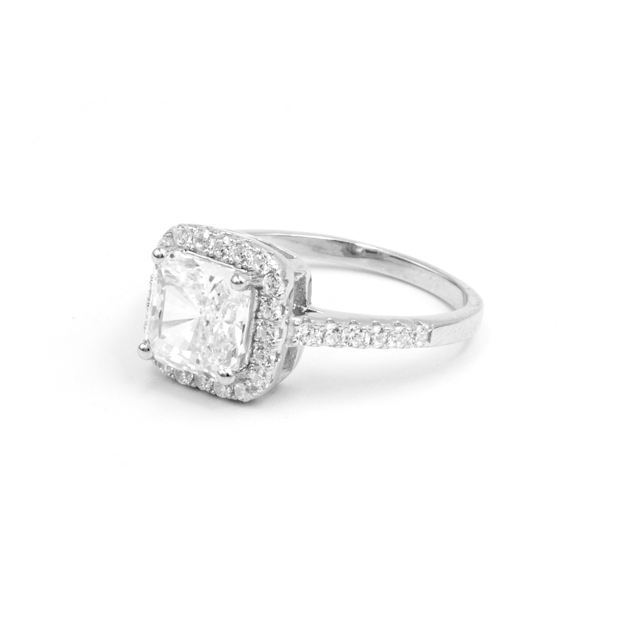 Anillo compromiso moissanita princesa y aureola blanco - plata 925