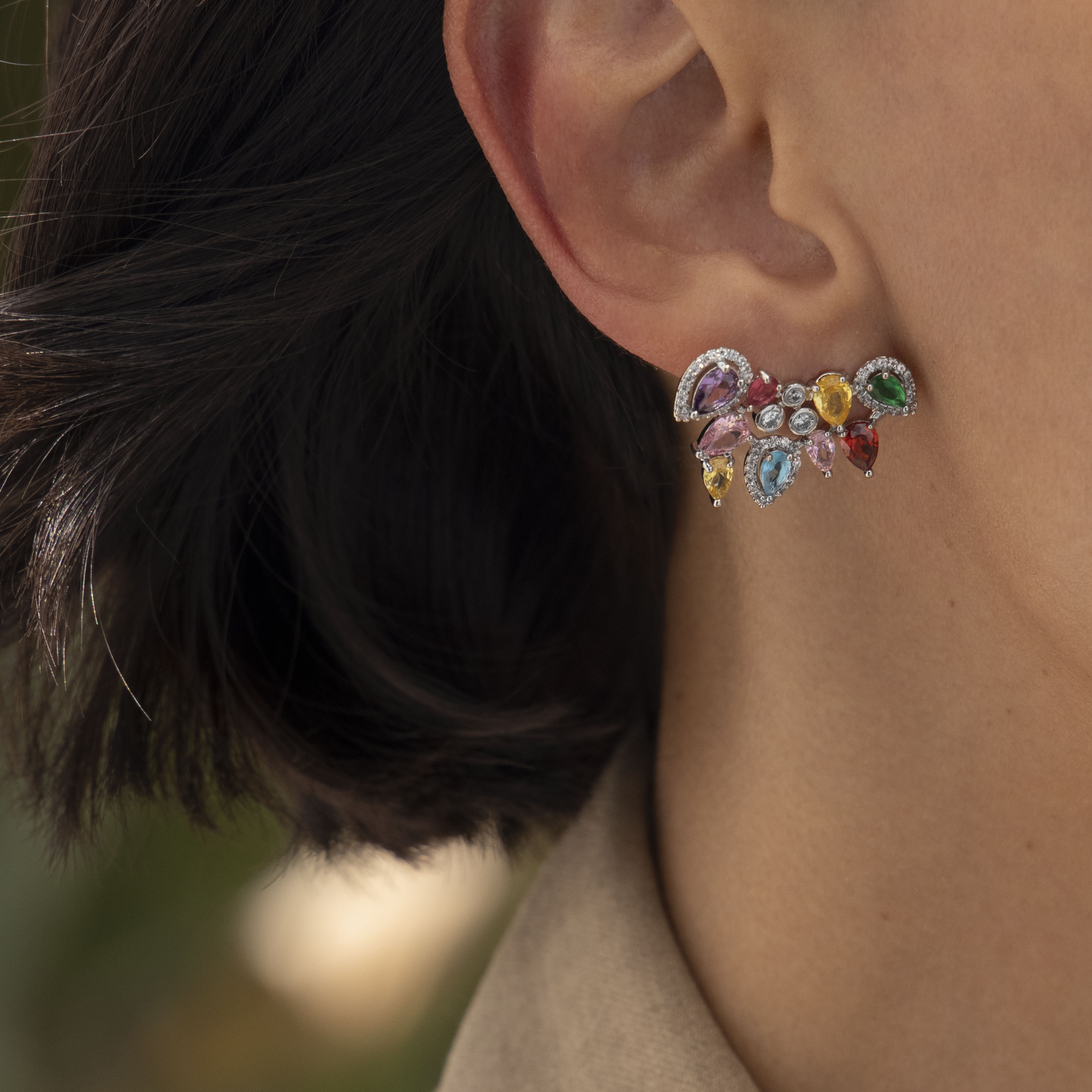 Aretes trepadores de zirconias de colores - chapa de rodio