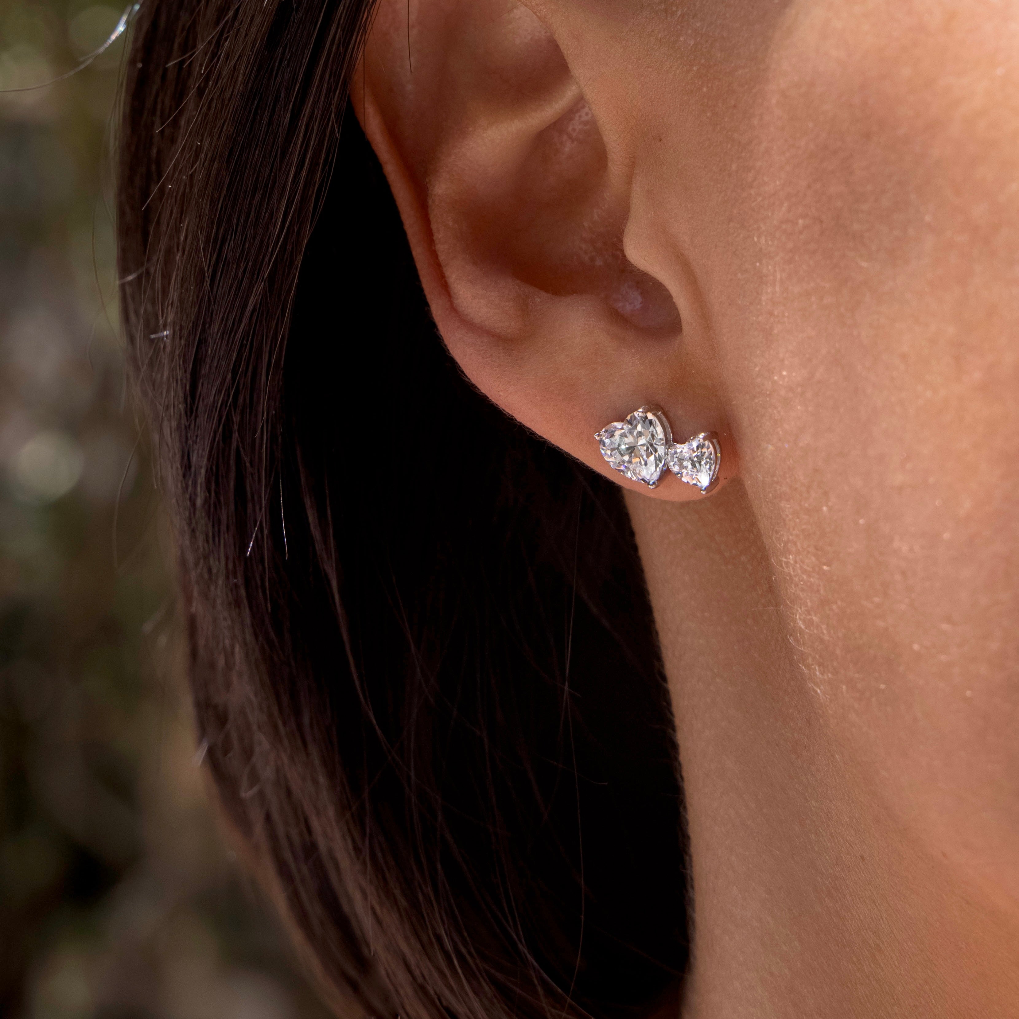 *Broqueles 2 corazones de zironias blanco - plata 925