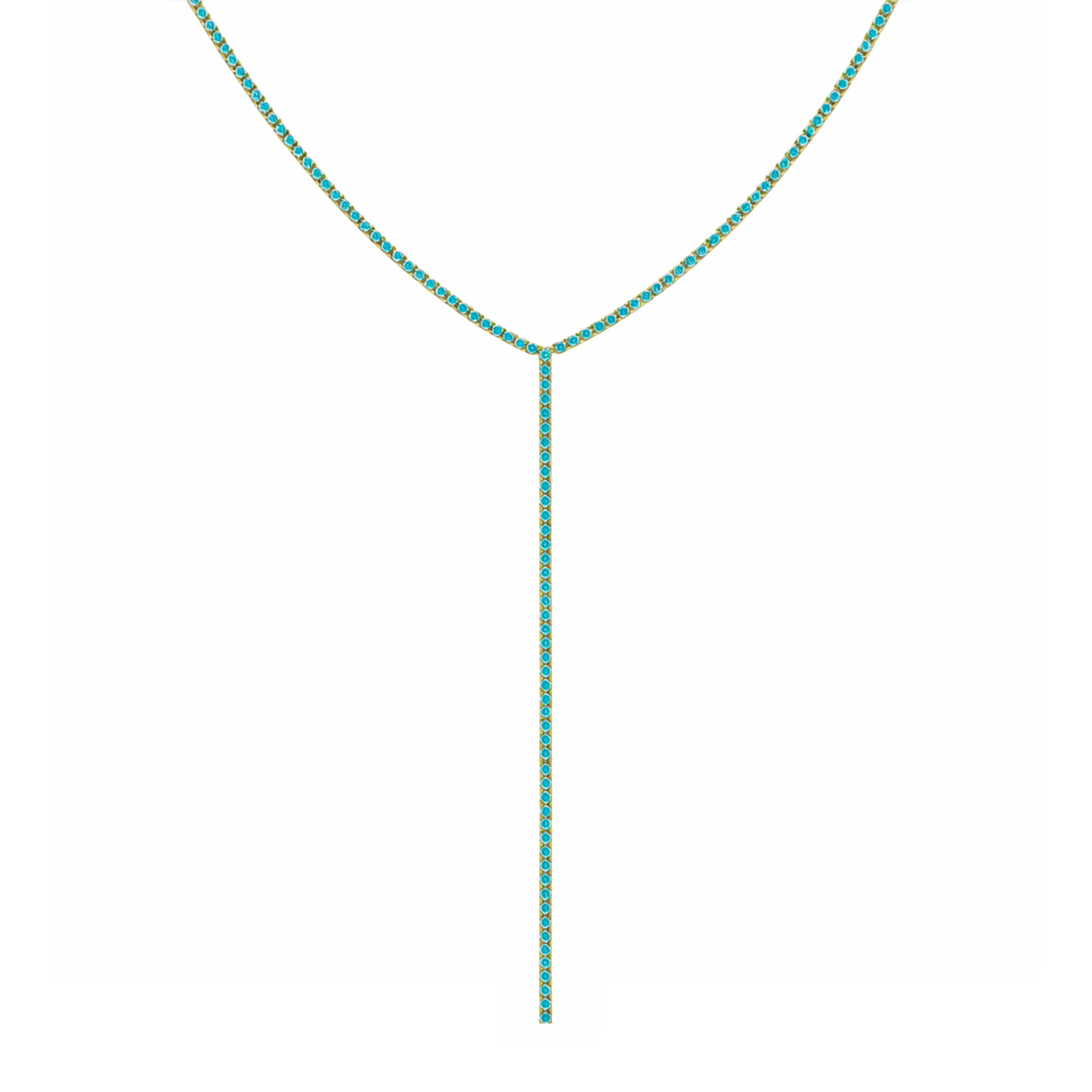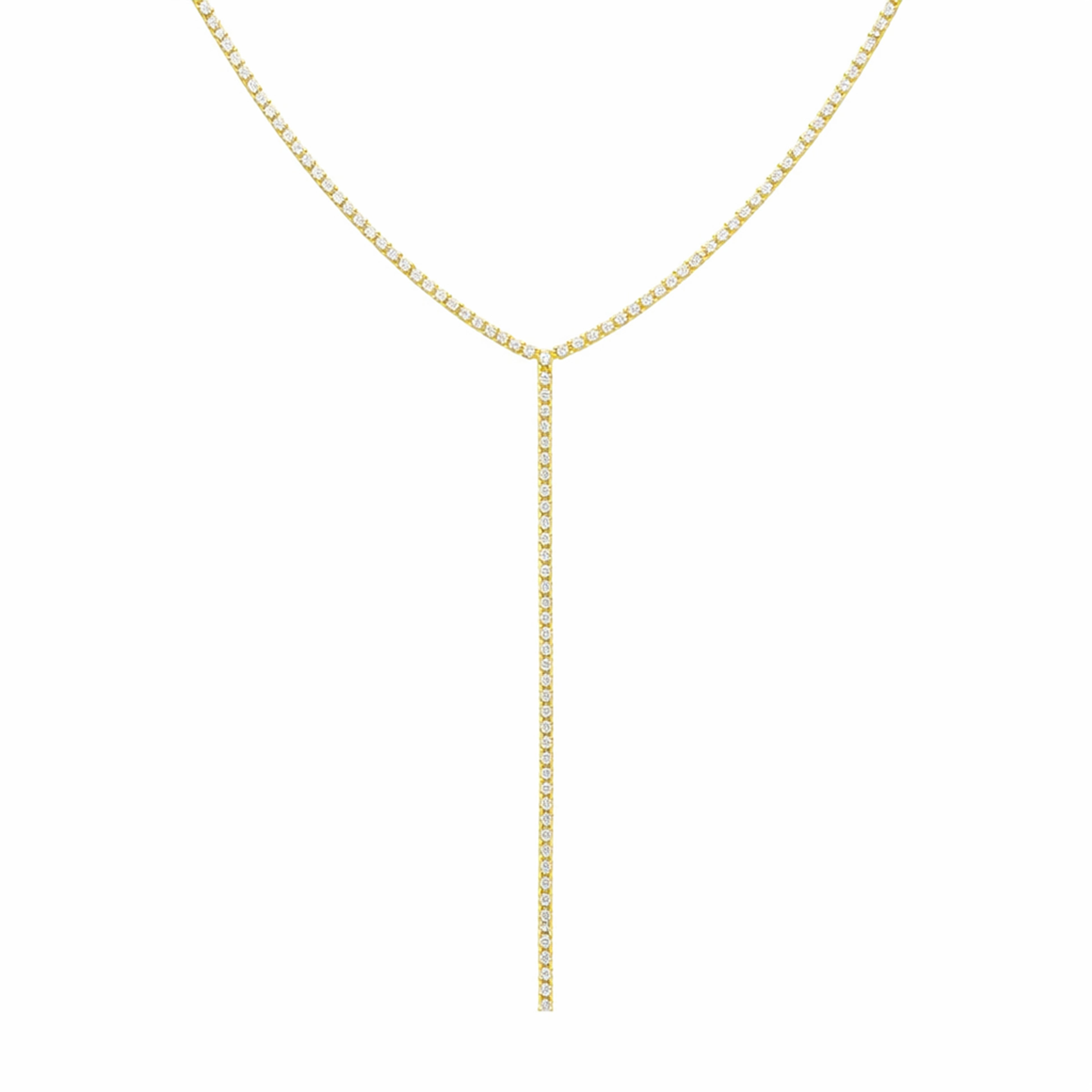 Collar lariat tipo "Y" tennis dorado - chapa de oro 14k