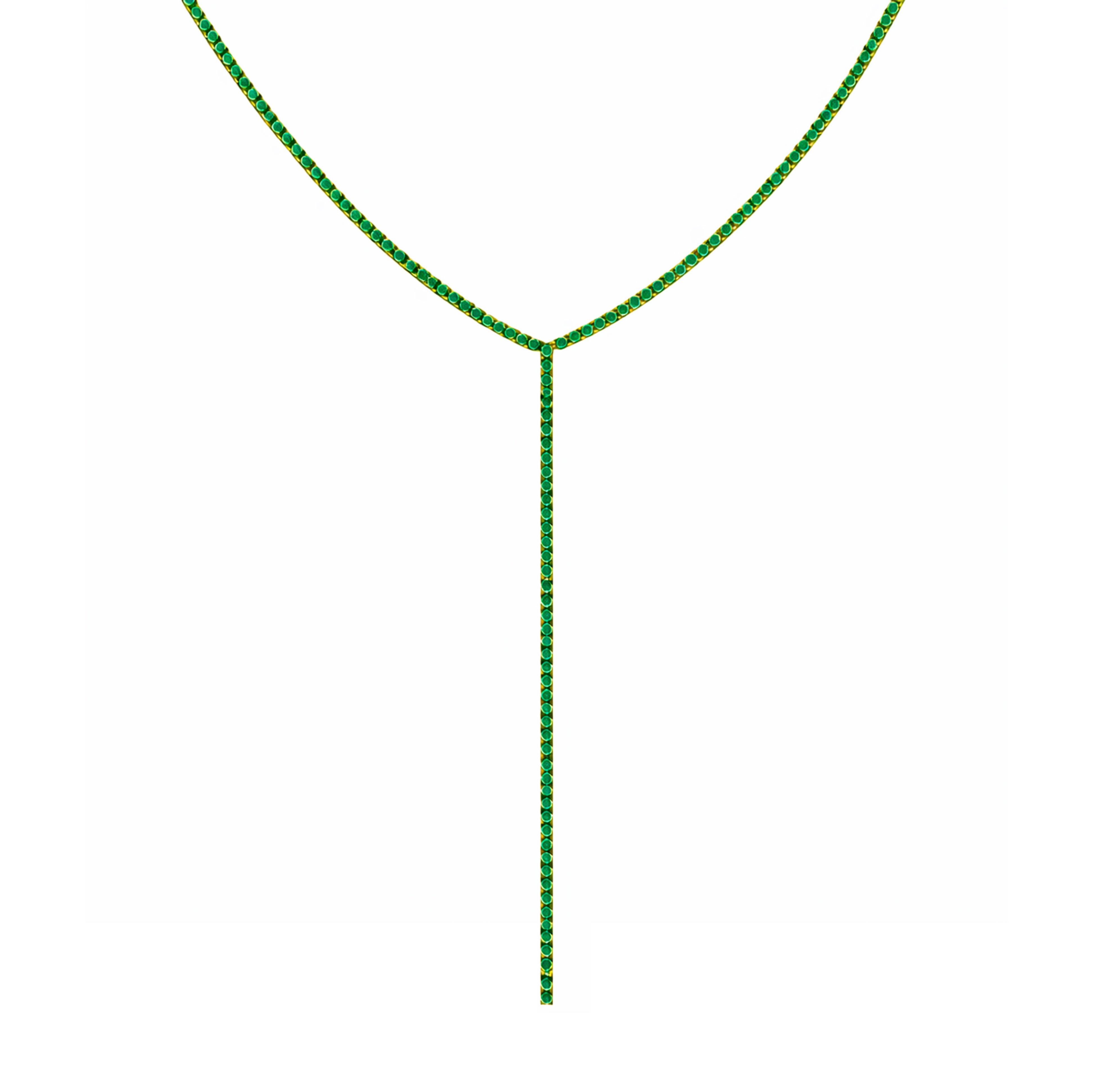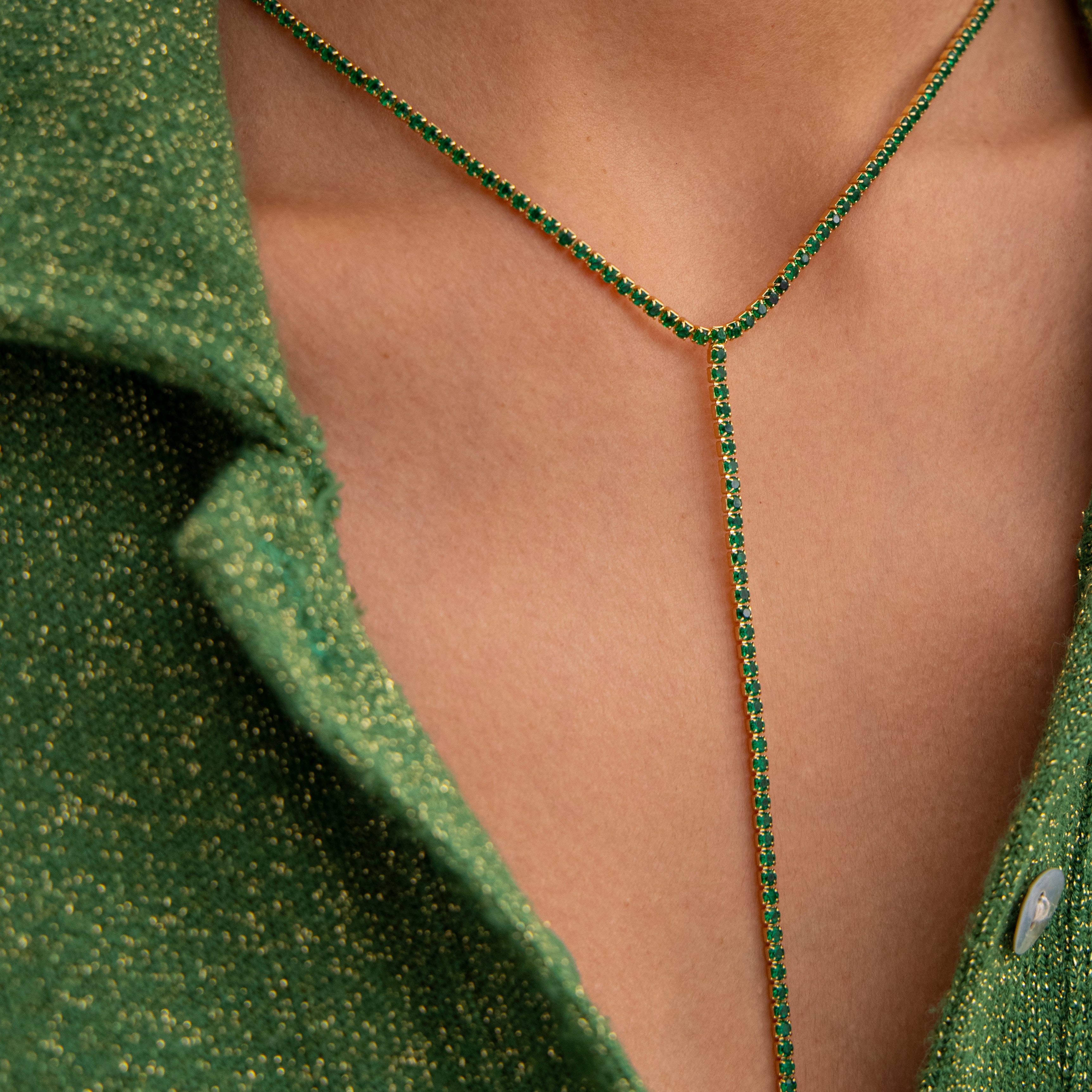 Collar lariat tipo "Y" tennis verde - chapa de oro 14k