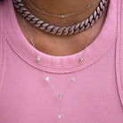 Sumérgete en el lujo moderno con nuestra impresionante gargantilla de cadena cubana en color plata de 10 mm, adornada con deslumbrantes zirconias rosa. El acabado en chapa de rodio no solo añade brillo duradero, sino que eleva tu estilo con un toque contemporáneo. Una declaración de elegancia audaz y glamour sofisticado.